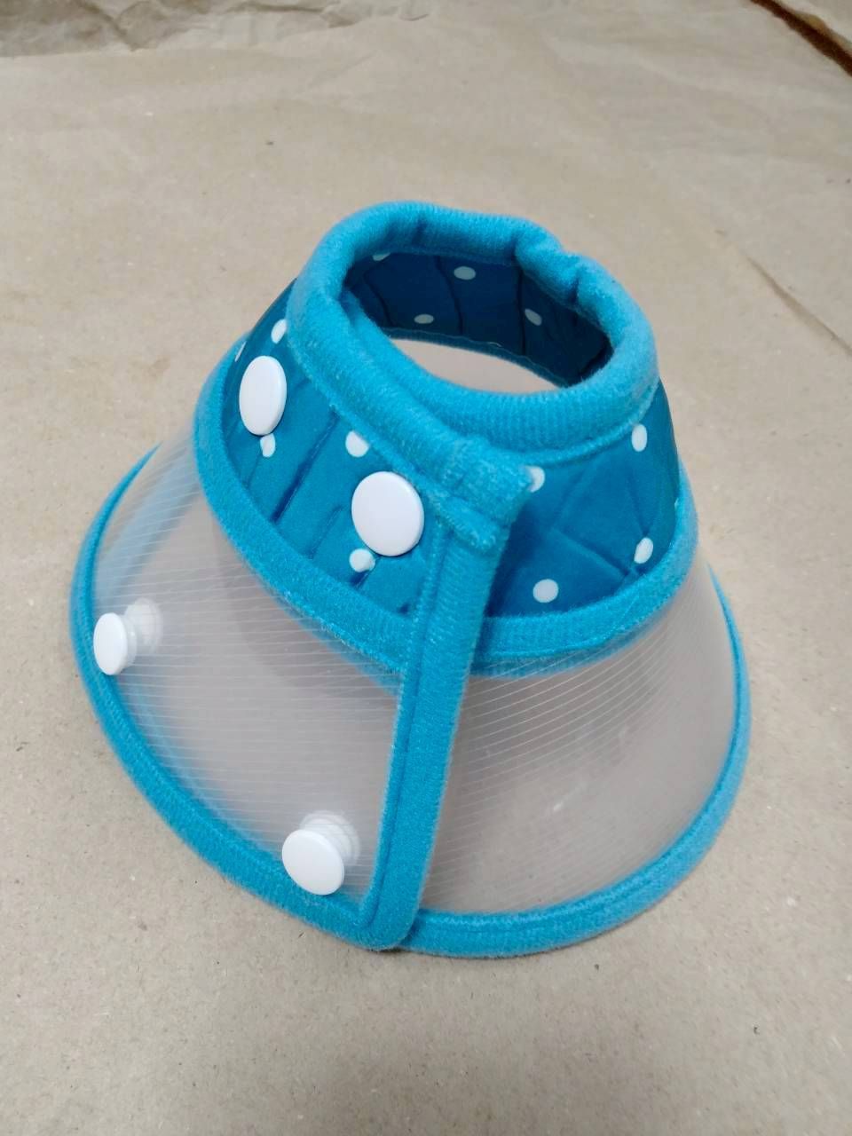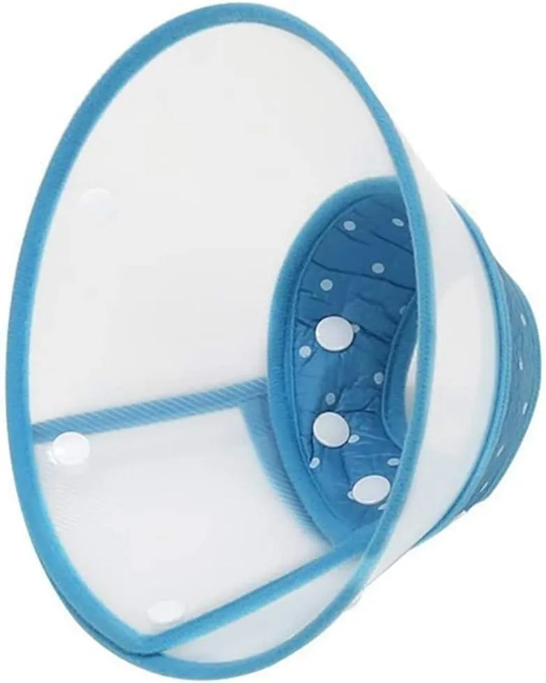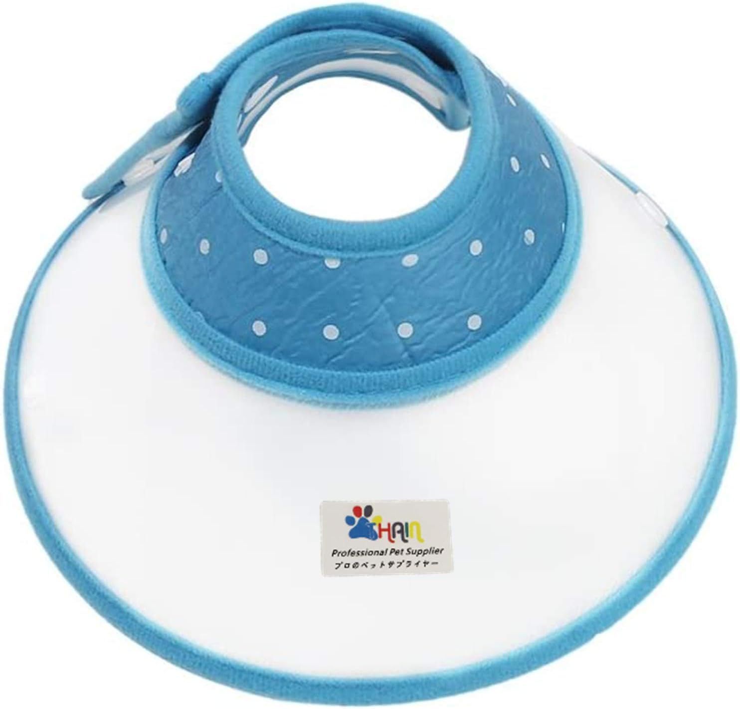 THAIN エリザベスカラー 水玉 ボタン式 犬猫用 エリザベスカラー 猫 ソフト 軽量 皮膚病 傷口保護 去勢手術 避妊 ペット介護用 (S, ブルー)