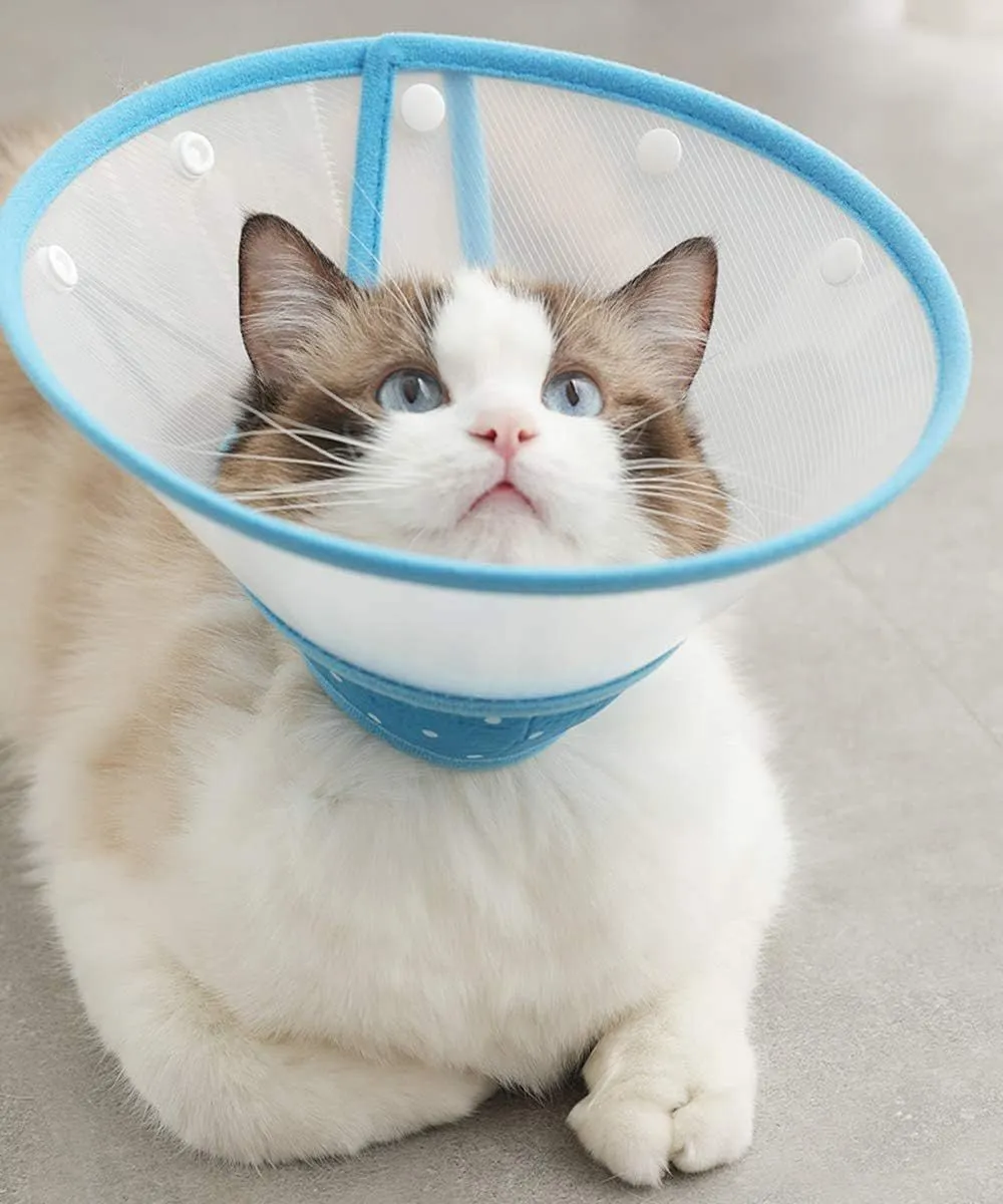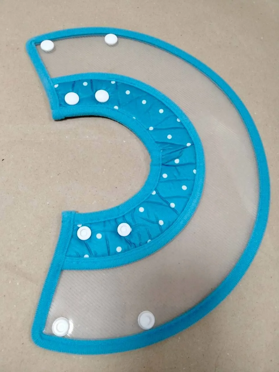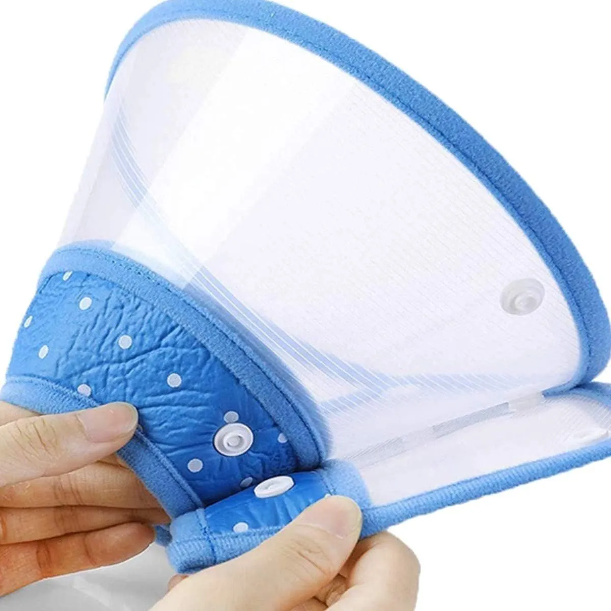 THAIN エリザベスカラー 水玉 ボタン式 犬猫用 エリザベスカラー 猫 ソフト 軽量 皮膚病 傷口保護 去勢手術 避妊 ペット介護用 (S, ブルー)