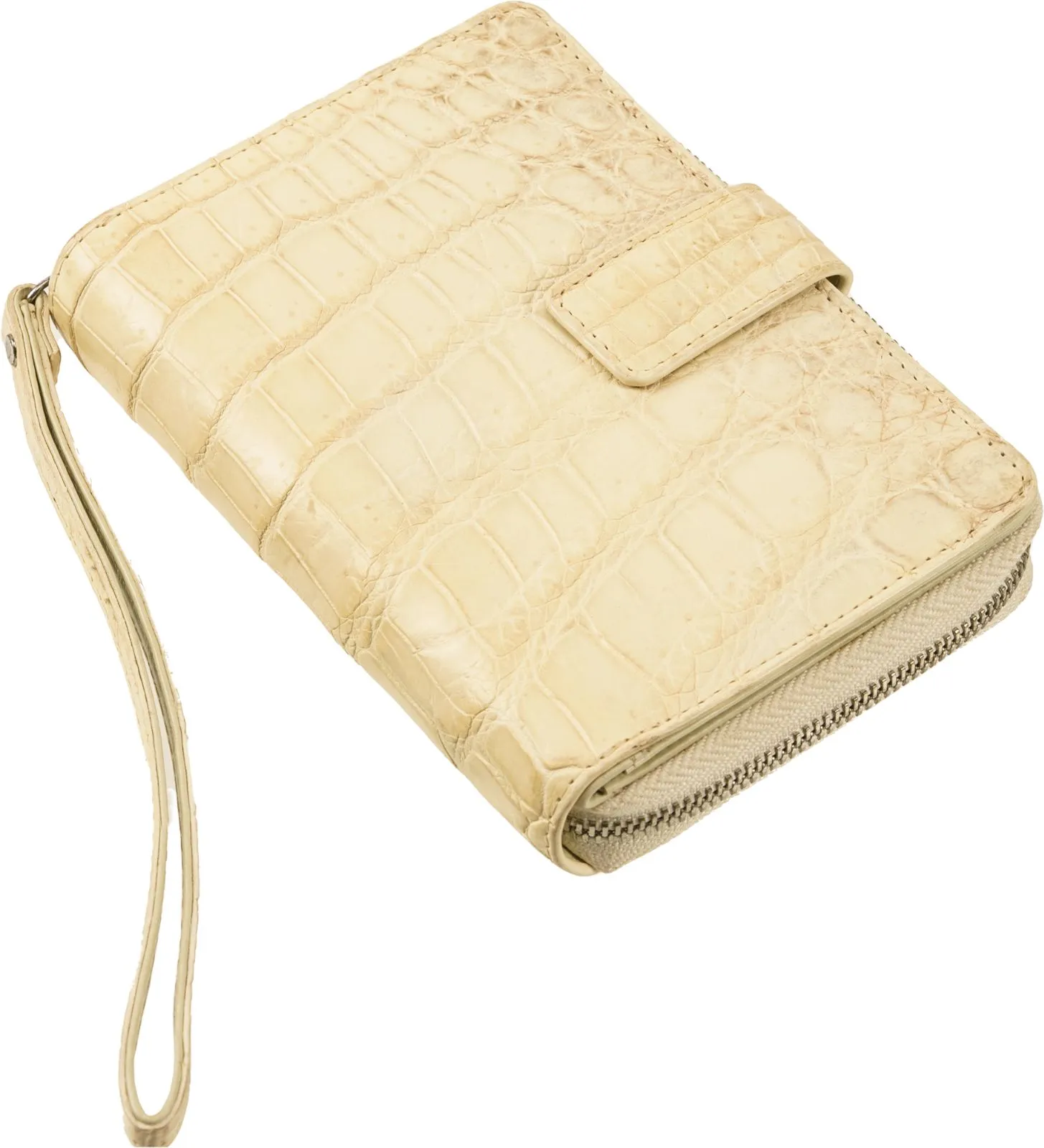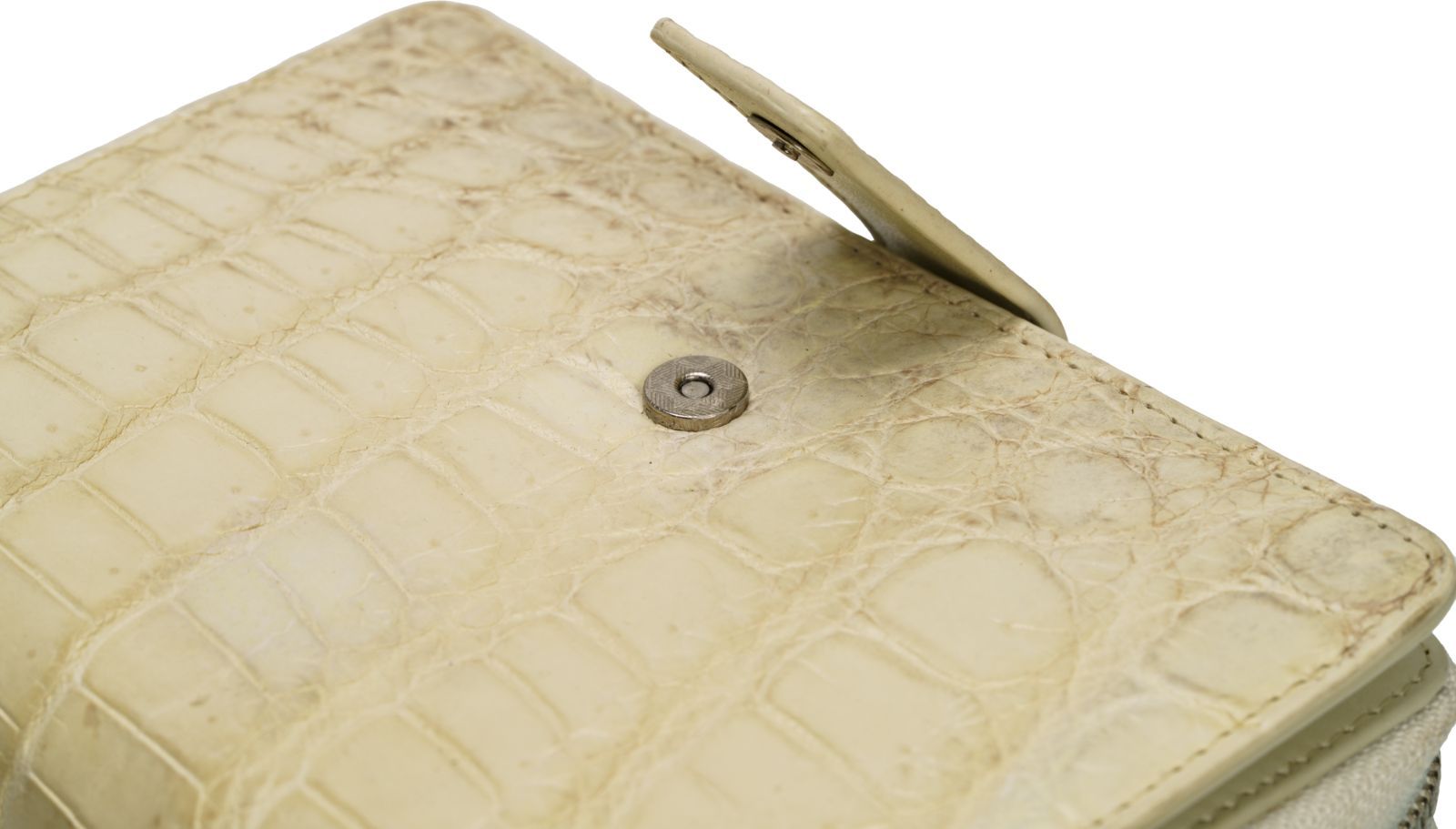 雪解けのヒマラヤ山脈を思わせる、淡いアイボリーとクリームのグラデーションが美しい本物クロコダイルのクラッチバッグ。ひと目で上質と分かる立体的な腑模様は、天然素材ならではの重厚感と艶を放ち、手にした瞬間から所有する喜びを感じさせます。クロコダイル革は「一度掴んだお金を離さない」とされる縁起の良い素材で、長く使うほどに深みのある風合いへと育ち、毎日のライフスタイルに自然なラグジュアリー感を添えます。