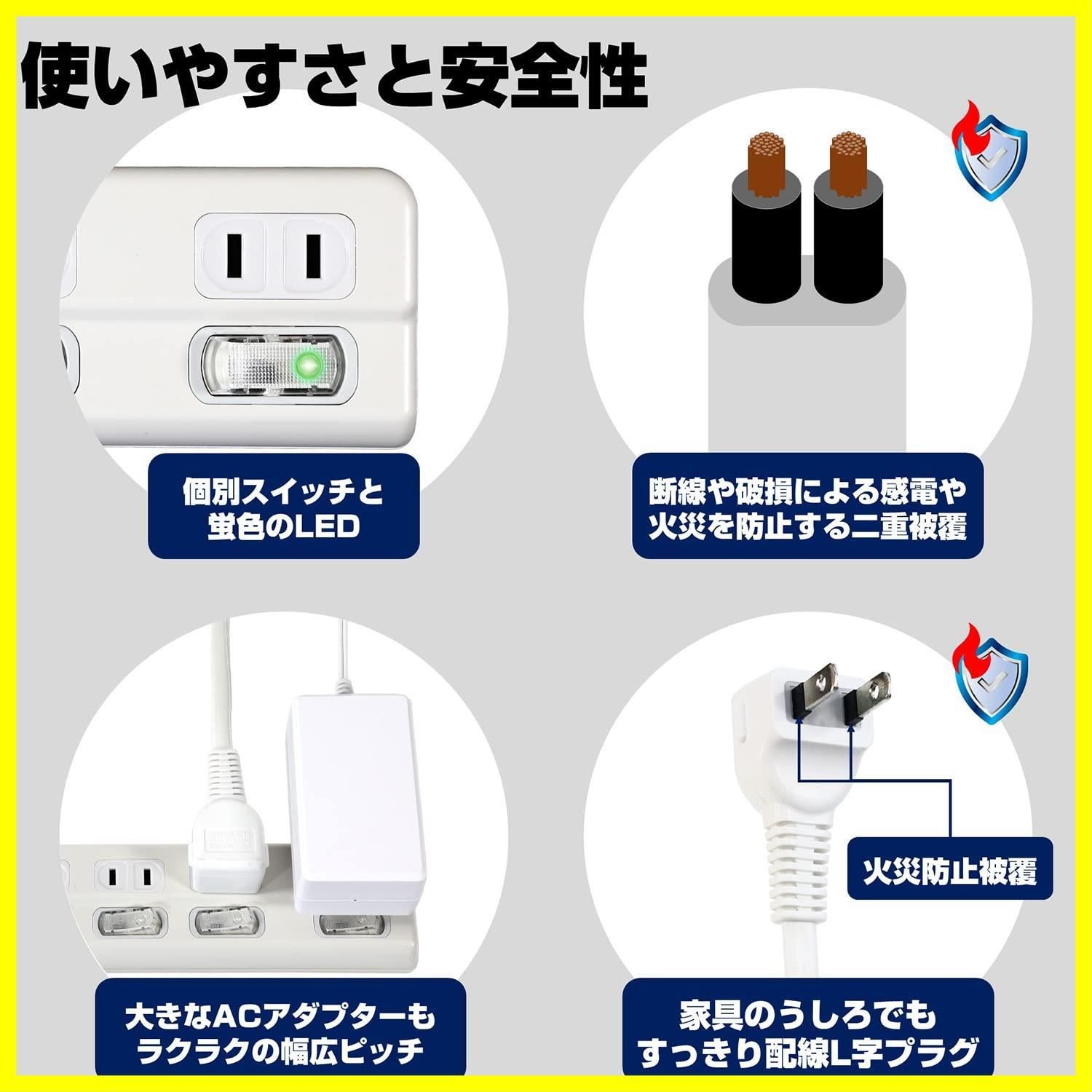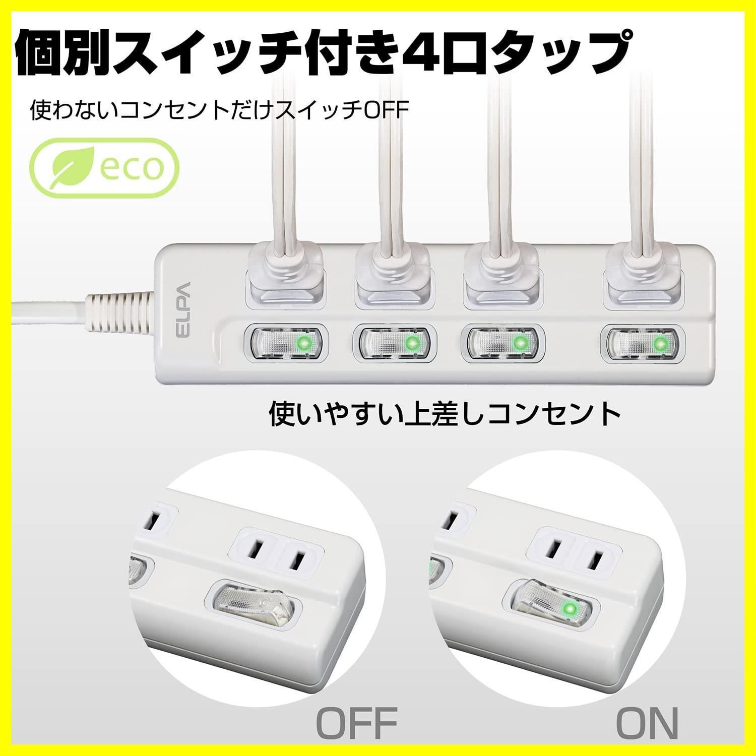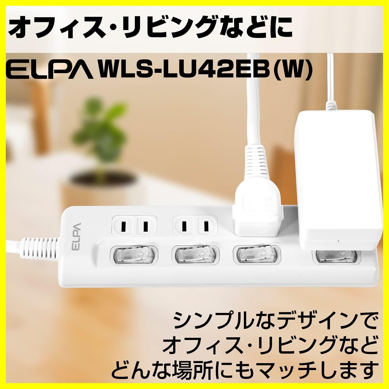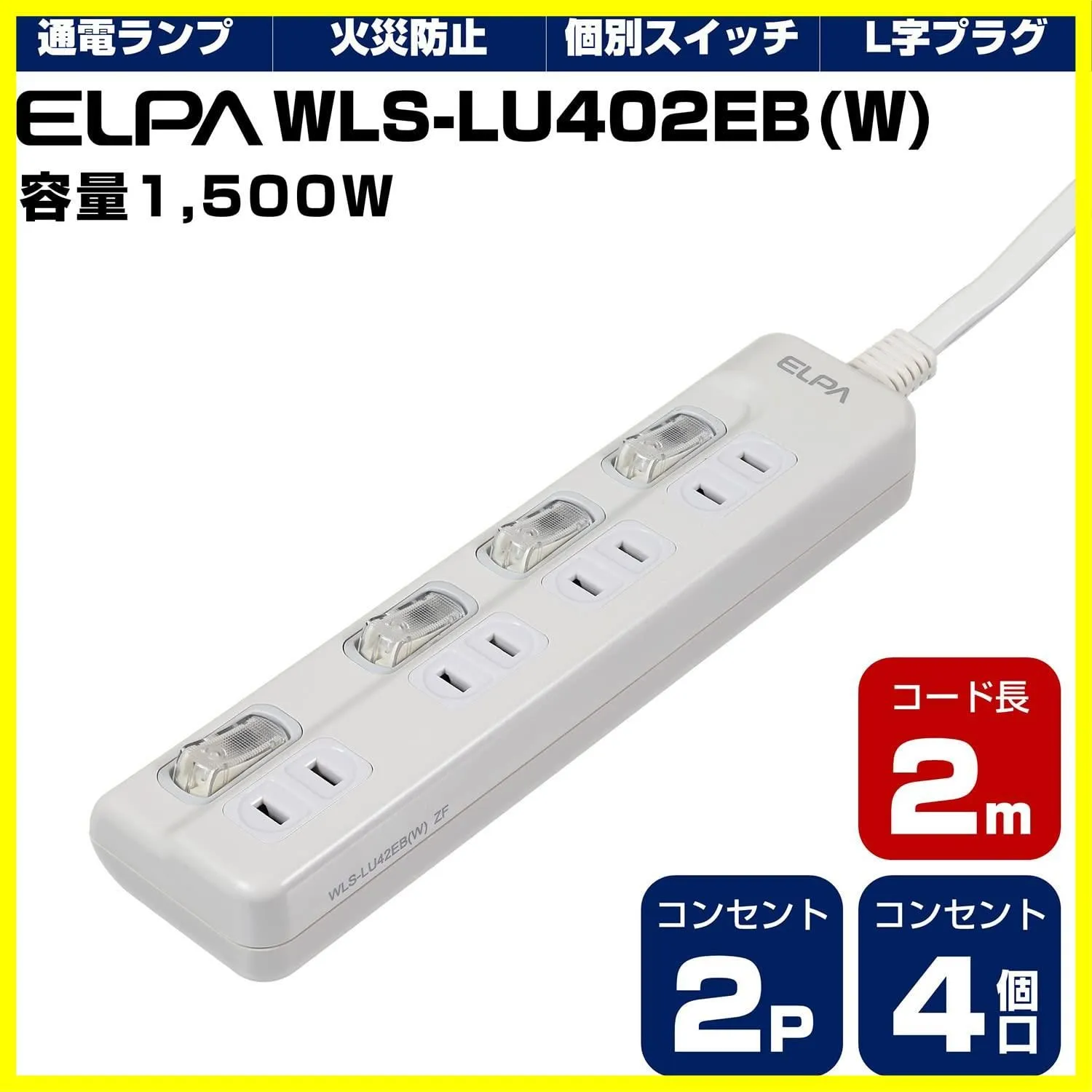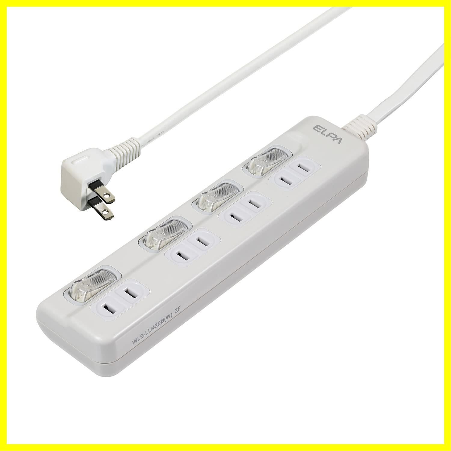 エルパELPA) LEDランプスイッチ付タップ 電源タップ 延長コード 125V 2m 4個口 WLS-LU42EBW)