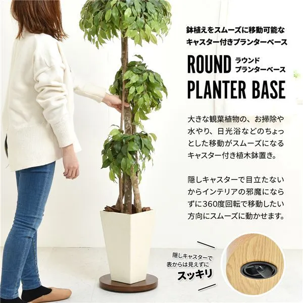 大きな観葉植物の、お掃除や水やり、日光浴などのちょっとした移動がスムーズになるキャスター付き植木鉢置き。鉢植えの世話を邪魔しないシンプルなフォルムに馴染みのいい木目調デザイン。隠しキャスターで目立たないからインテリアの邪魔にならずに、360度回転で移動したい方向にスムーズに動かせます。