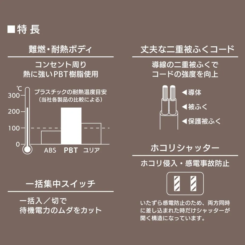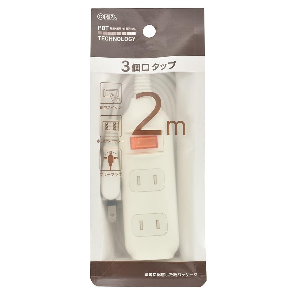 オーム(OHM)オーム電機 電源タップ 3個口 集中スイッチ付き 2m HS-TP32SW22 00-1681