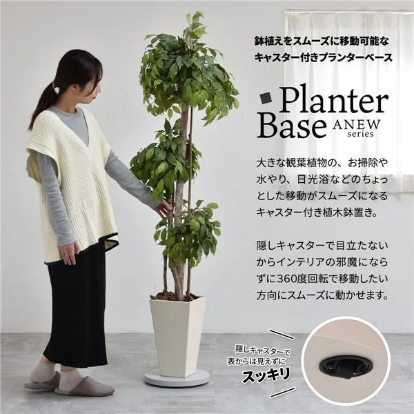 大きな観葉植物の、お掃除や水やり、日光浴などのちょっとした移動がスムーズになるキャスター付き植木鉢置き。鉢植えの世話を邪魔しないシンプルなフォルムに馴染みのいい木目調デザイン。隠しキャスターで目立たないからインテリアの邪魔にならずに、360度回転で移動したい方向にスムーズに動かせます。