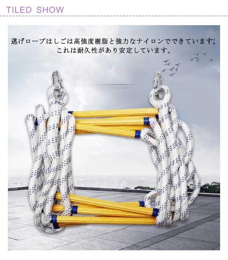 逃げロープはしごは高強度樹脂と強力なナイロンでできています。これは耐久性があり安定しています。