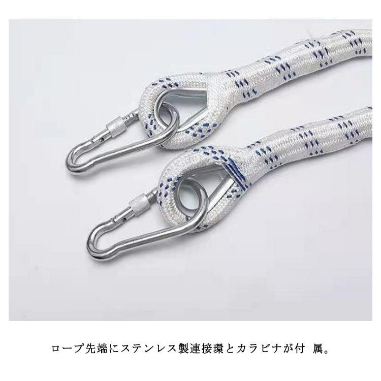 ロープ先端にステンレス製連接環とカラビナが付 属。