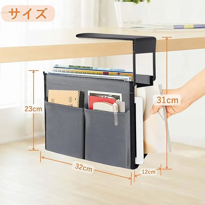 【多機能ポケットでデスク整理革命】 左右に大小サイドポケットを配置。USBケーブル・ペン・名刺など小物を分類収納。マガジンラックとPCバッグを兼用できる2WAY設計。引き出し式トレイでアクセス性も向上。散らかりがちなデスク上を一瞬でスッキリ。