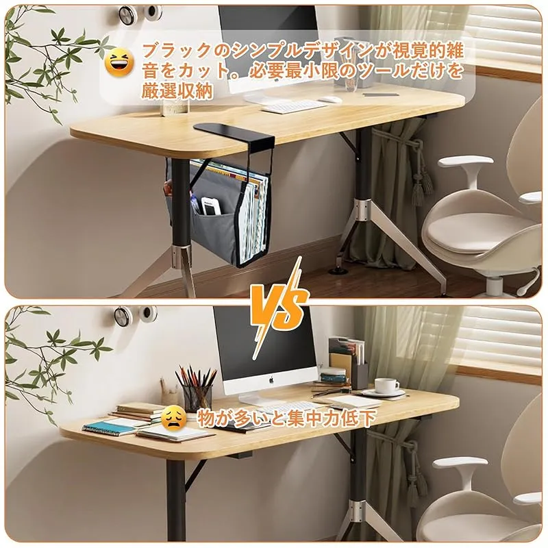 【簡単設置】 デスク端に引っ掛けるだけで即設置可能。滑り止め・防錆加工で安定性抜群。賃貸住宅でもデスクを傷つけず、生活環境の変化(引越し・転職)にも柔軟対応。