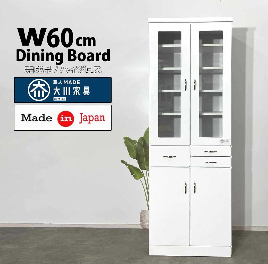 ■商品名:60DBハイグロスシートダイニングボード ファッショナブルな食器棚 完成品 キッチンボード 大川家具 安い食器棚 格安食器棚 ホワイト 食器棚