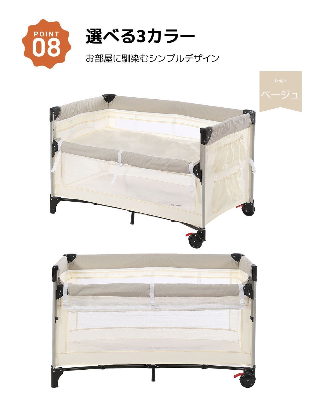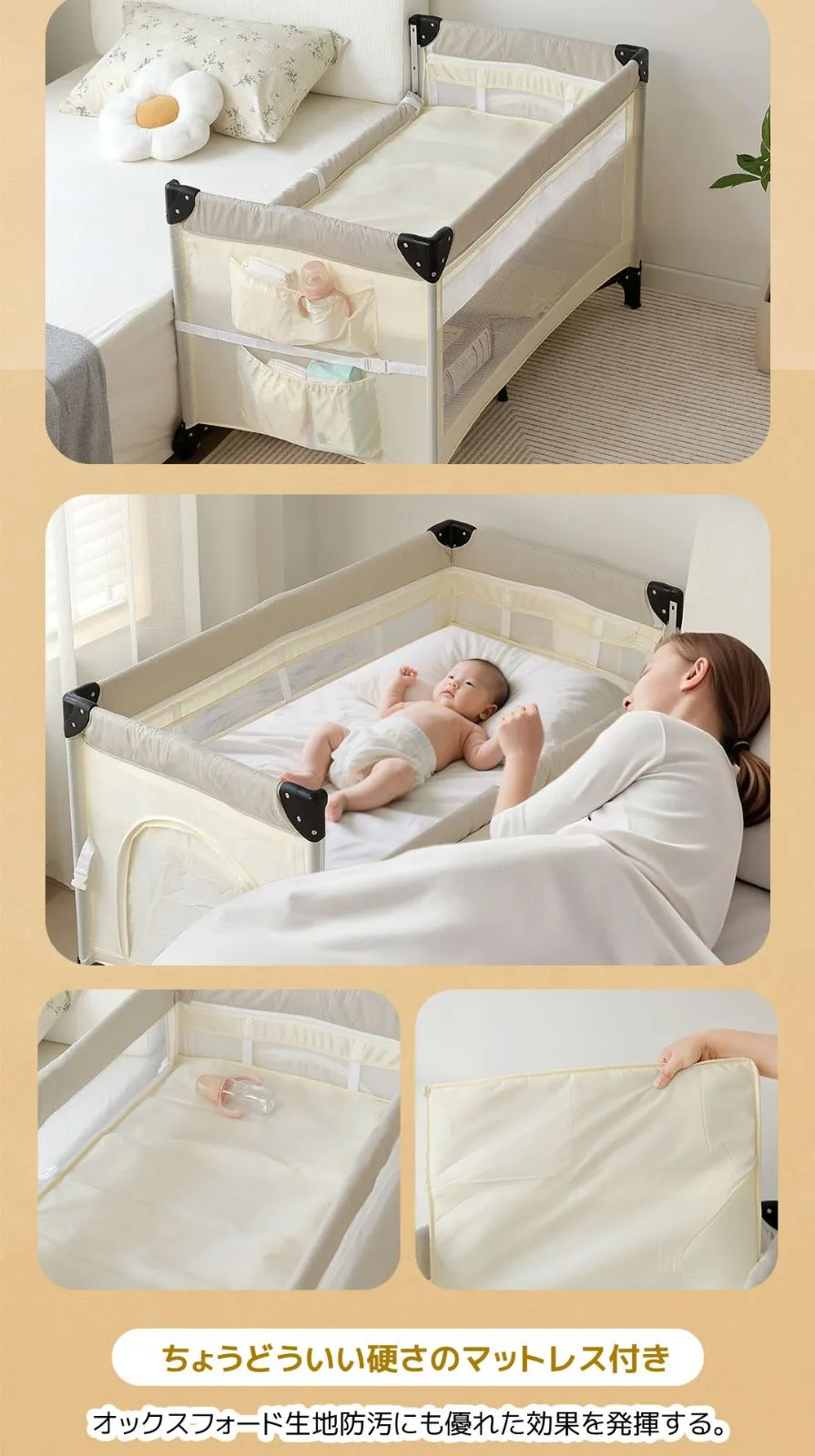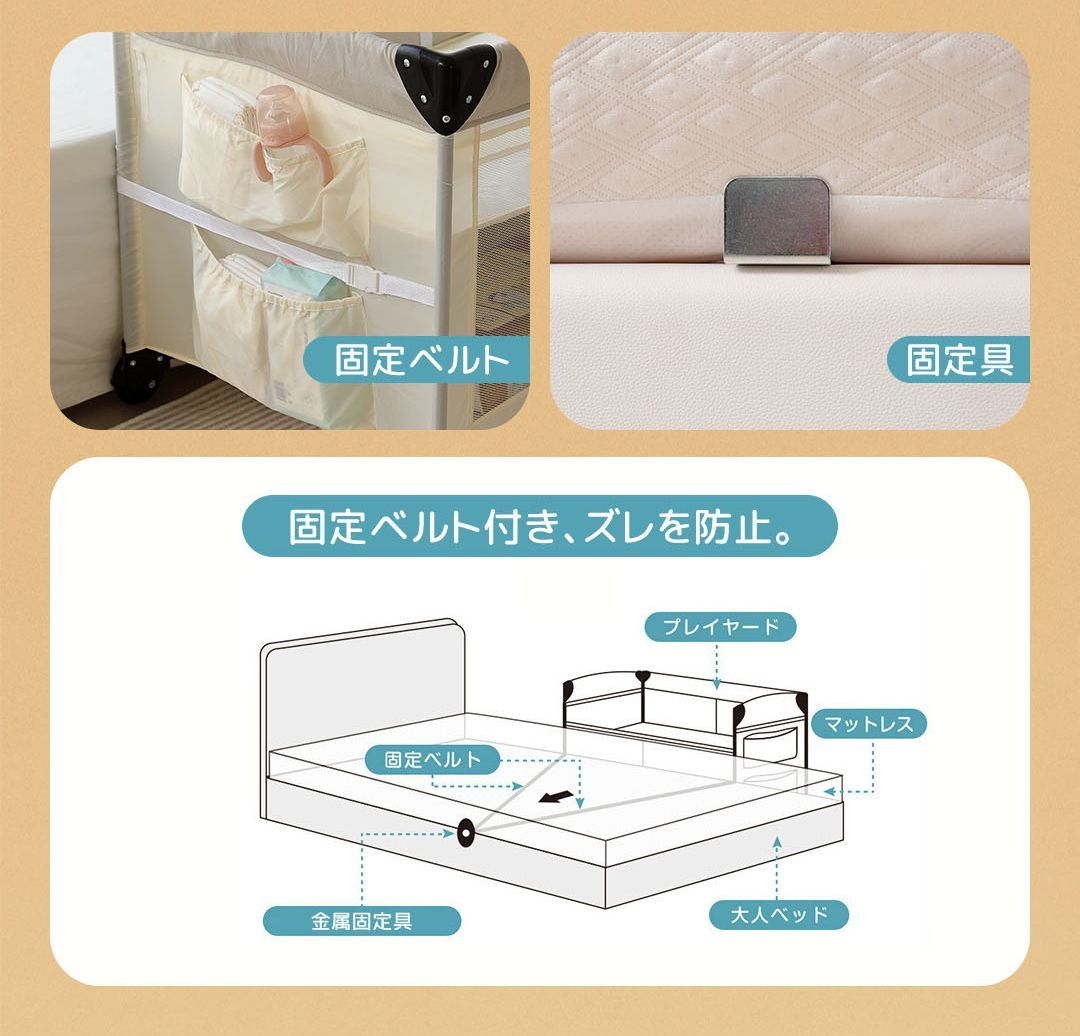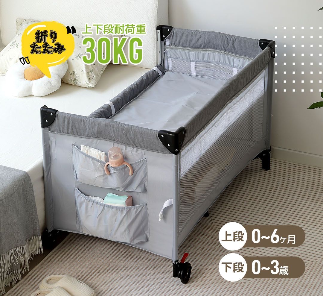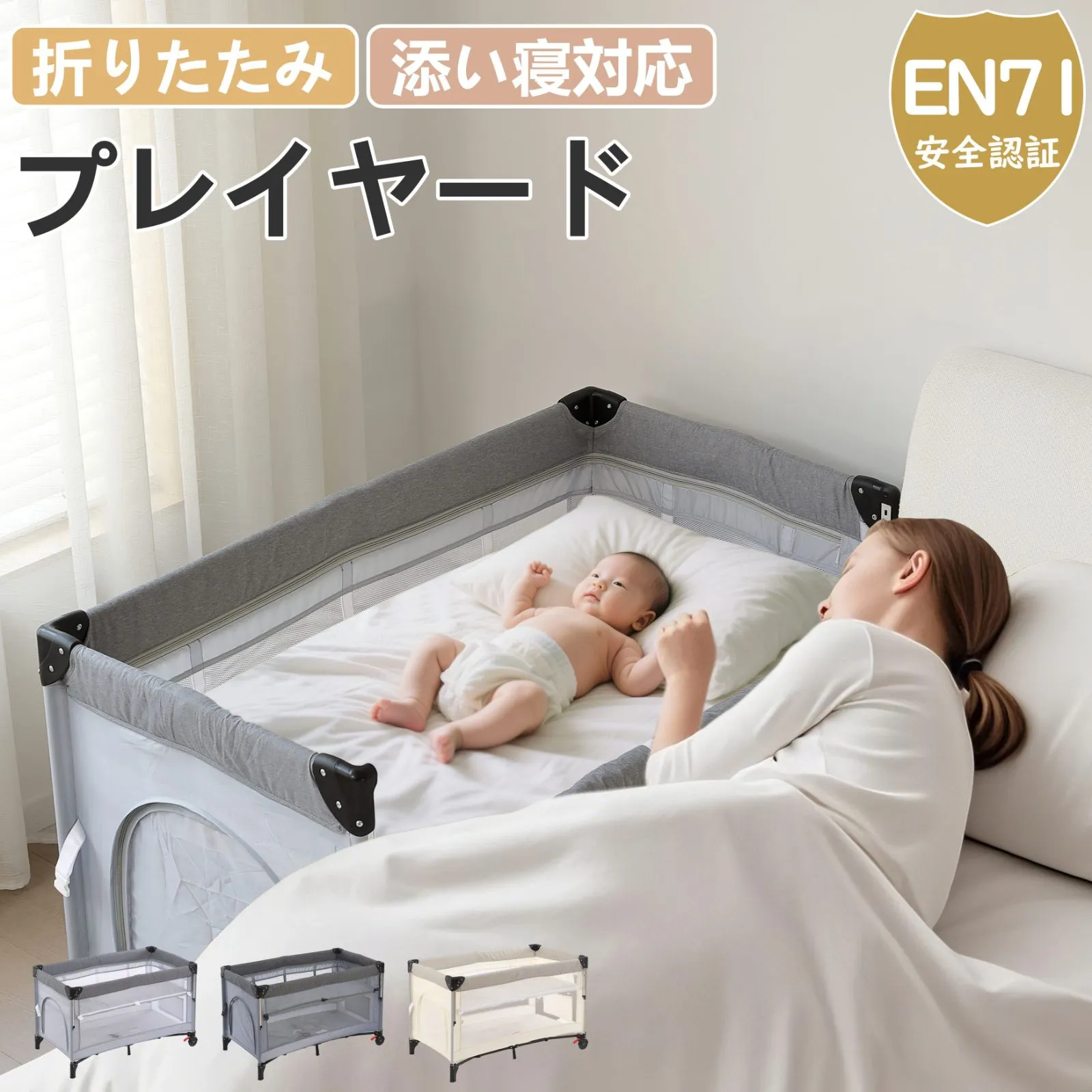 プレイヤード 折りたたみ 赤ちゃん 添い寝対応 添い寝ベッド 収納 マット付き 軽量 ベビーサークル 組立簡単 お昼寝ベッド コンパクト キャスター付き 持ち運び キャリーバッグ付 新生児 出産祝い EN71安全認証済
