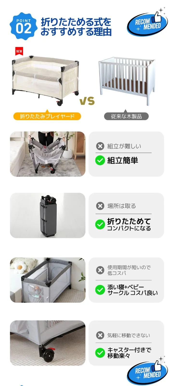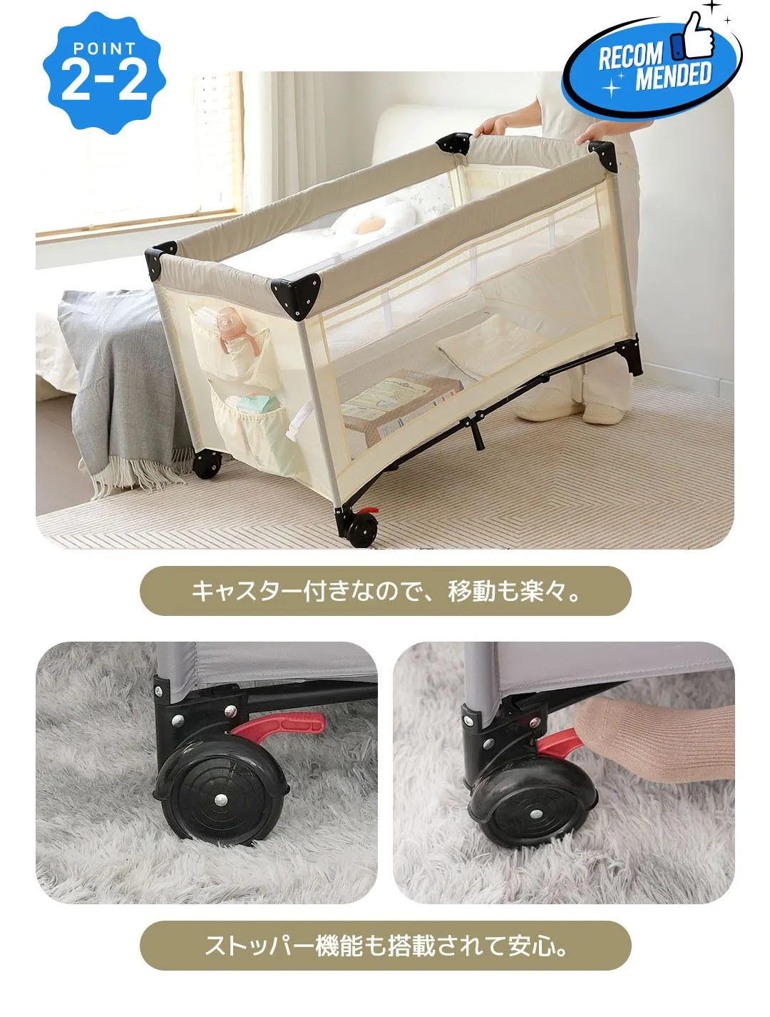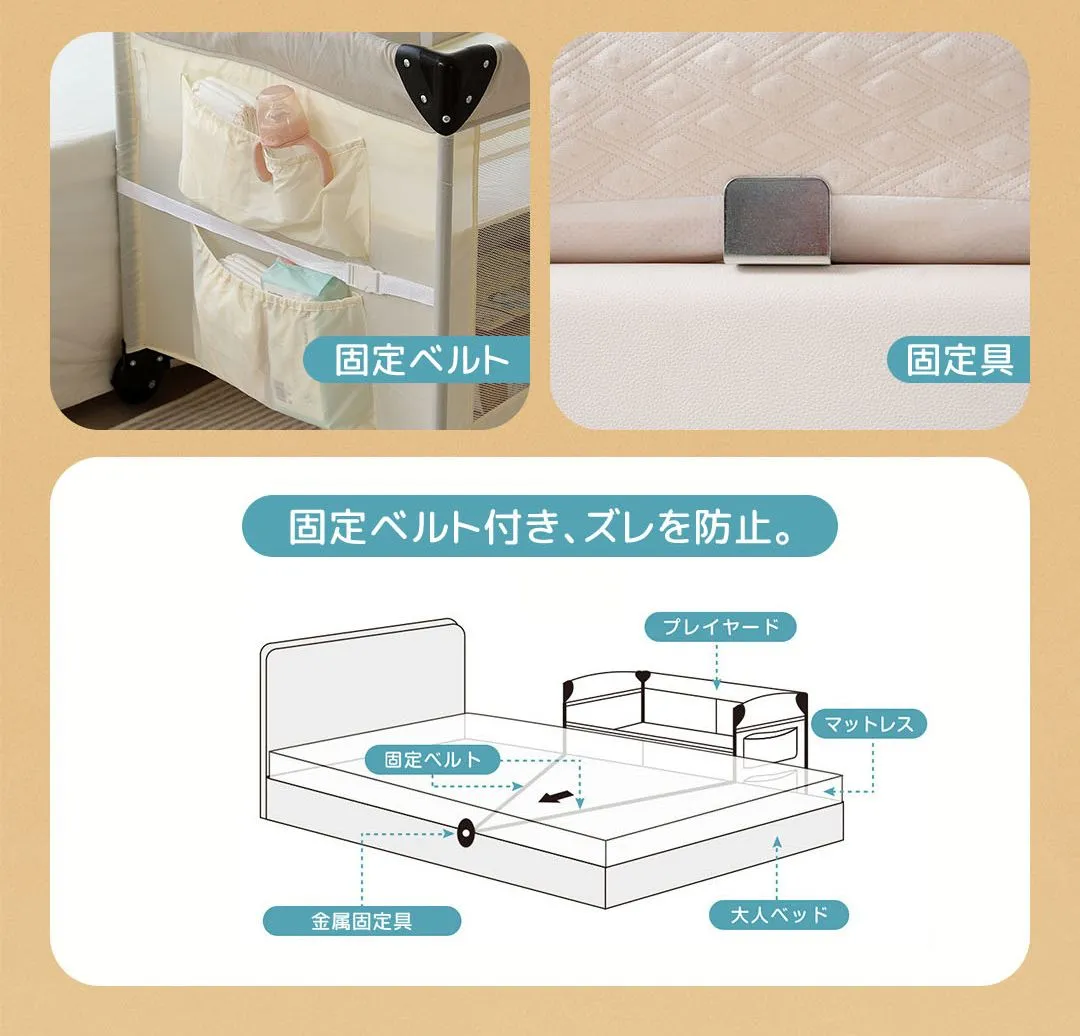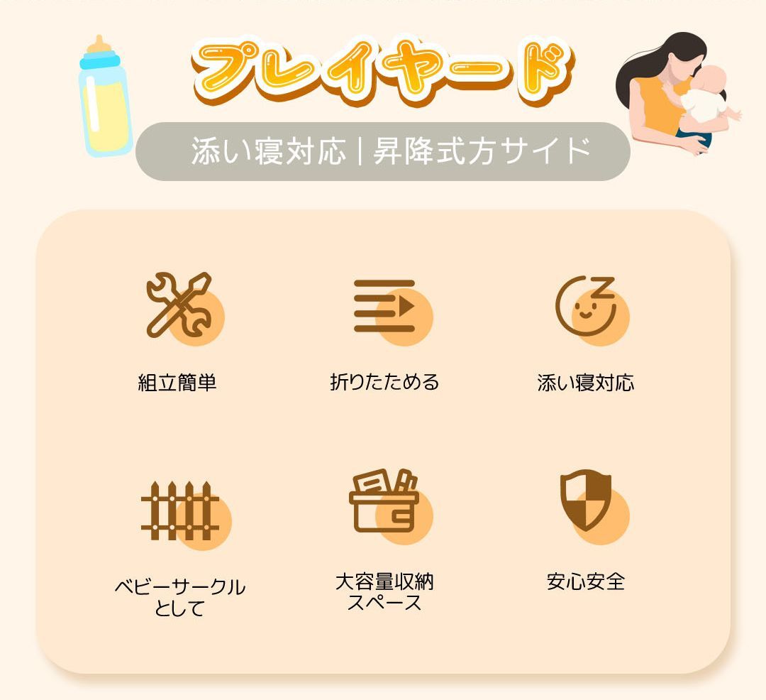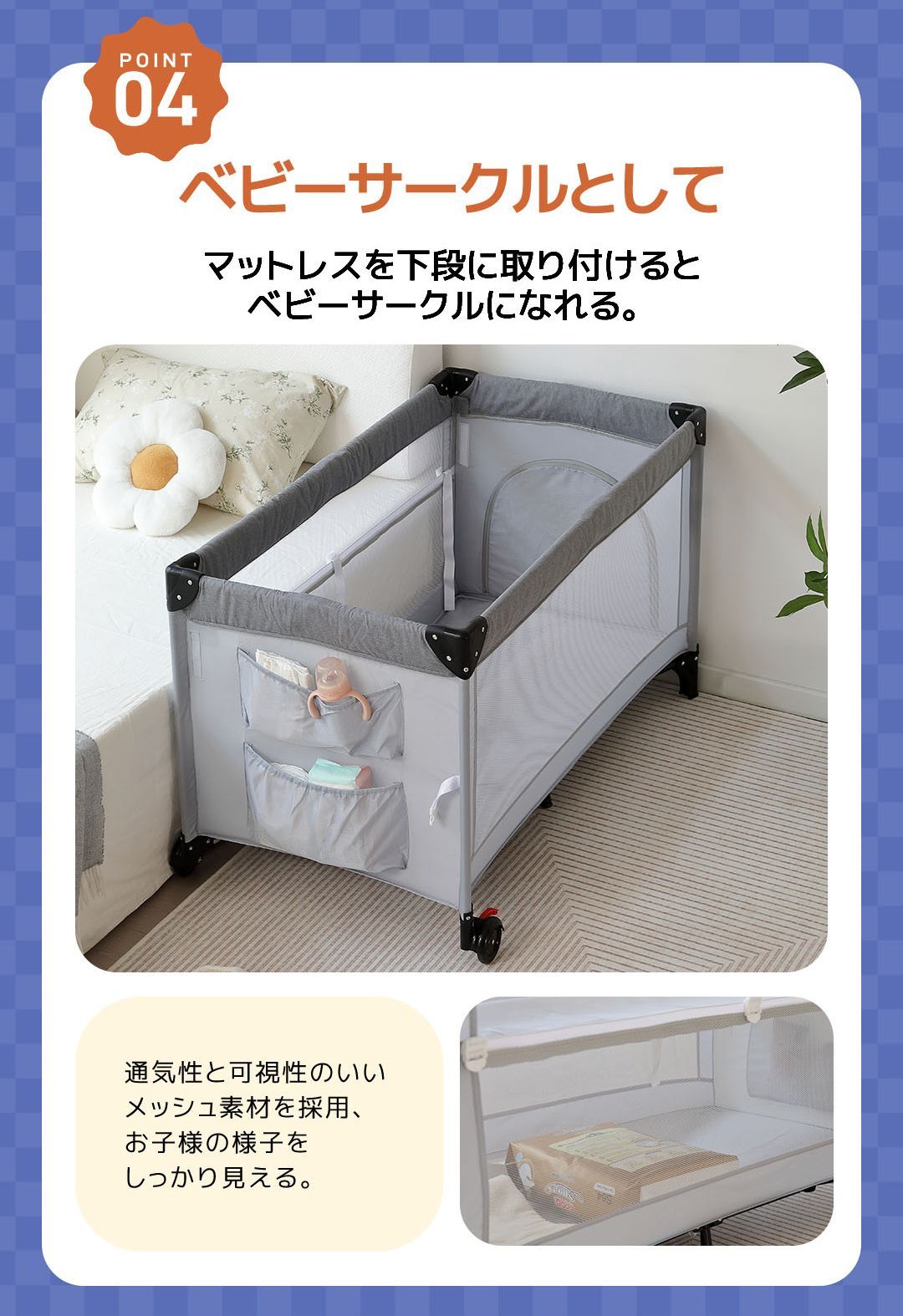 プレイヤード 折りたたみ 赤ちゃん 添い寝対応 添い寝ベッド 収納 マット付き 軽量 ベビーサークル 組立簡単 お昼寝ベッド コンパクト キャスター付き 持ち運び キャリーバッグ付 新生児 出産祝い EN71安全認証済