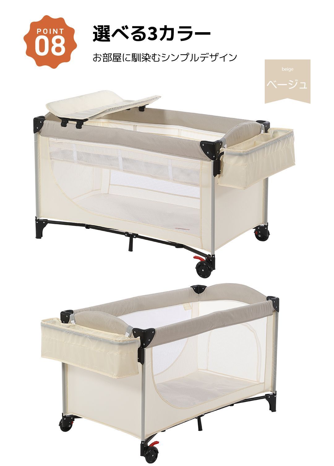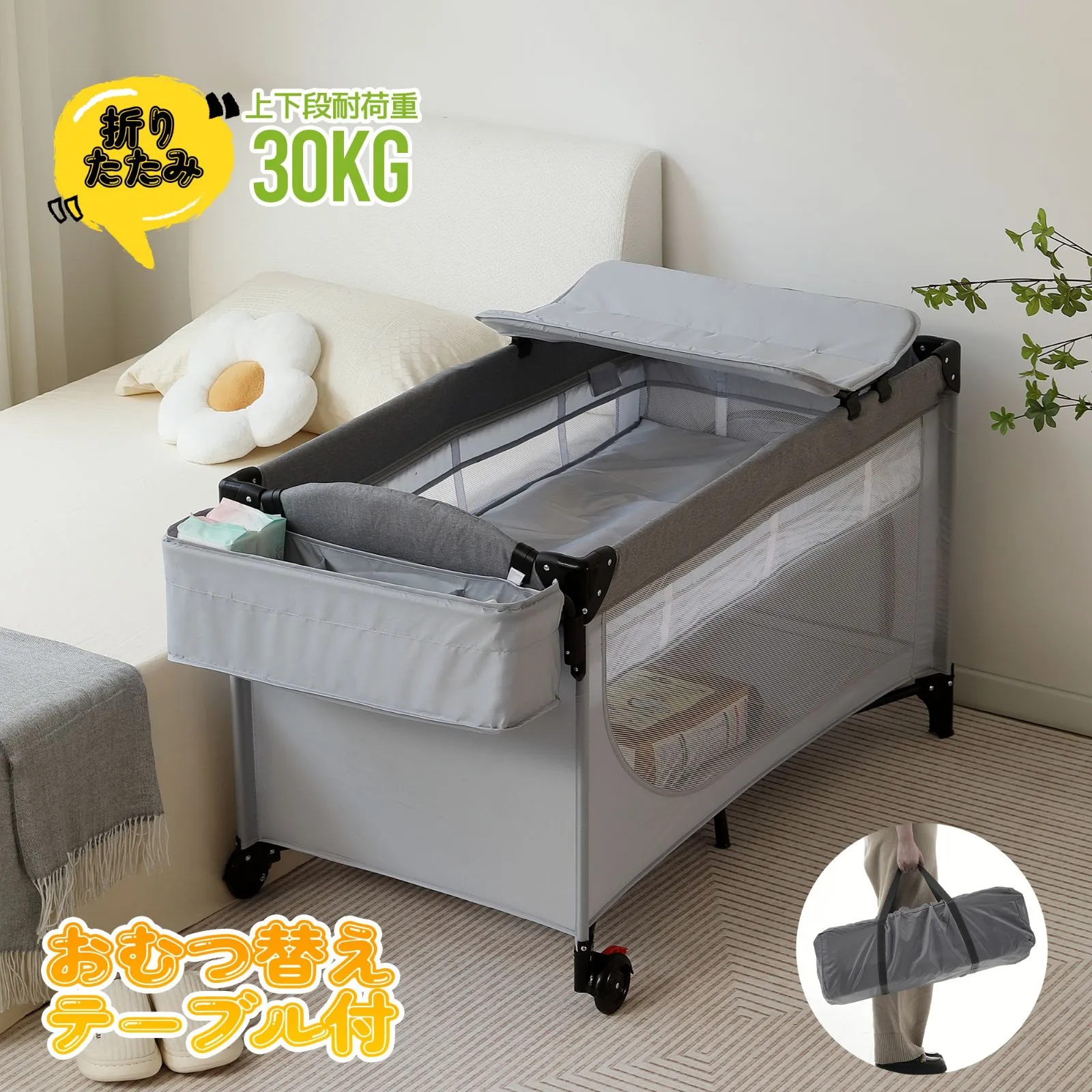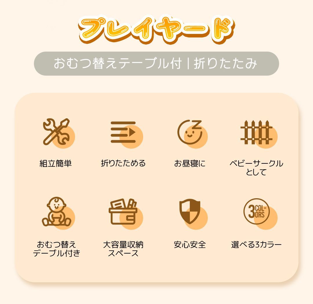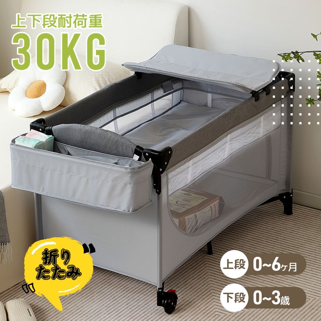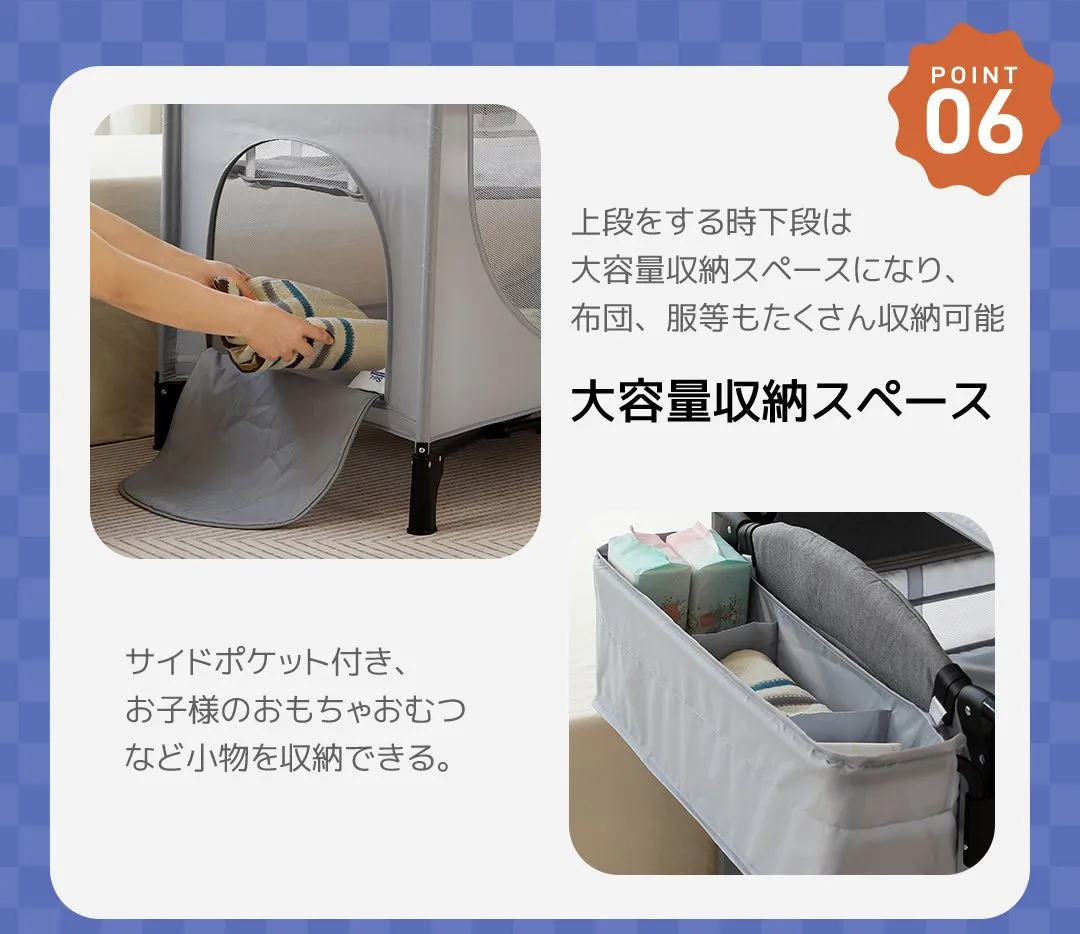プレイヤード 折りたたみ ベビーサークル 添い寝ベッド おむつ替えテーブル付 収納付き マット付き お昼寝ベッド 組立簡単 新生児 キャリーバッグ付