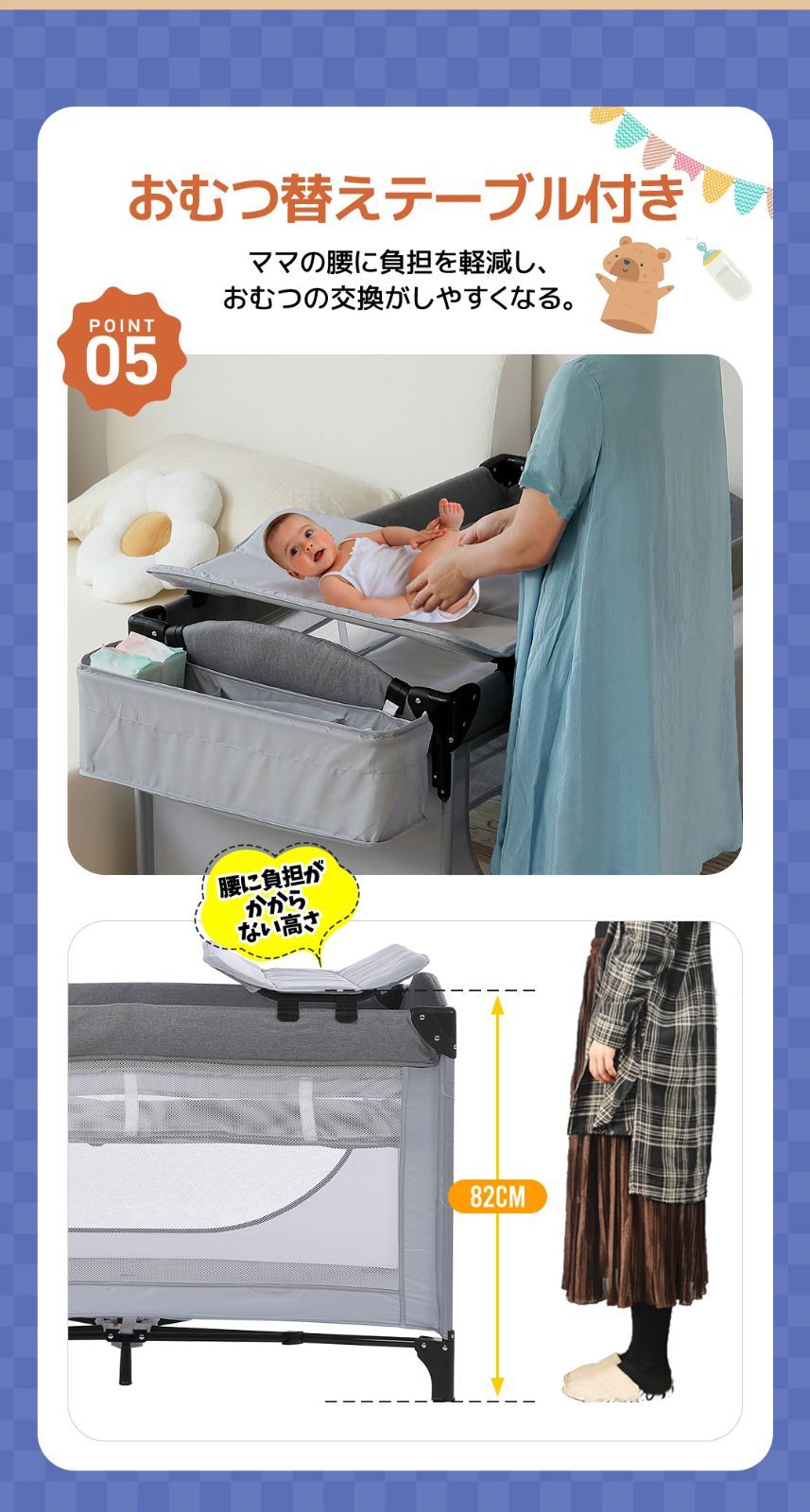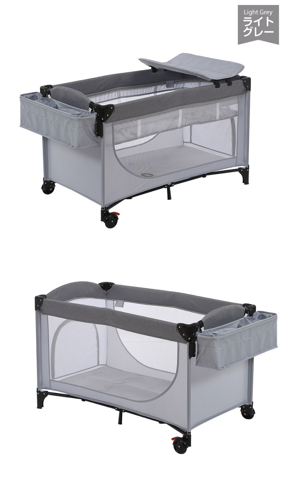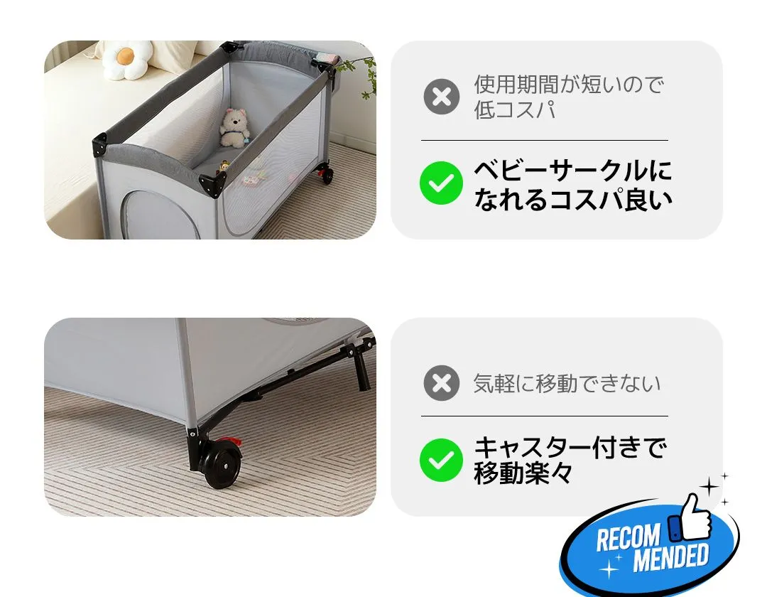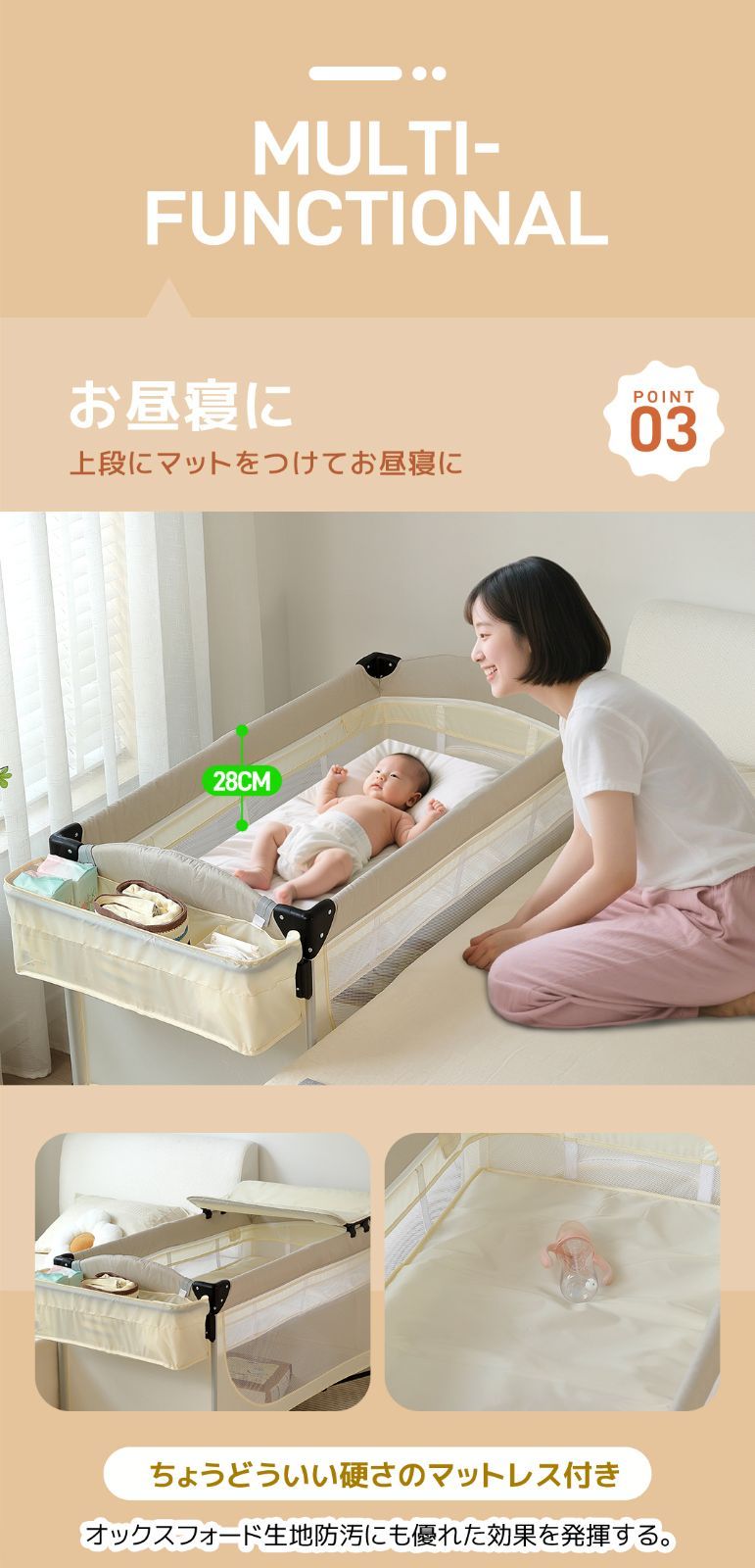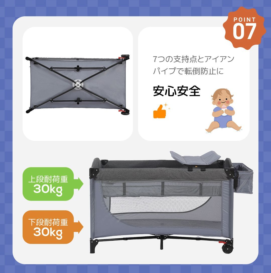 プレイヤード 折りたたみ ベビーサークル 添い寝ベッド おむつ替えテーブル付 収納付き マット付き お昼寝ベッド 組立簡単 新生児 キャリーバッグ付