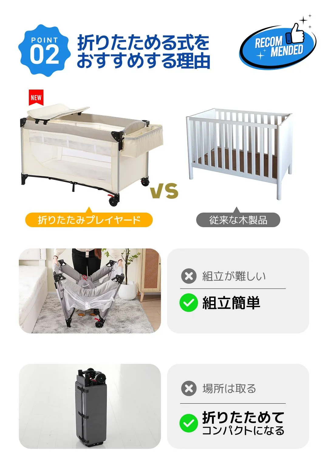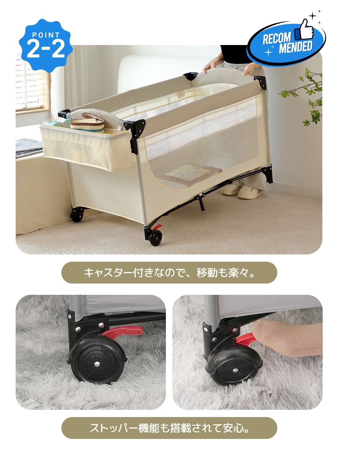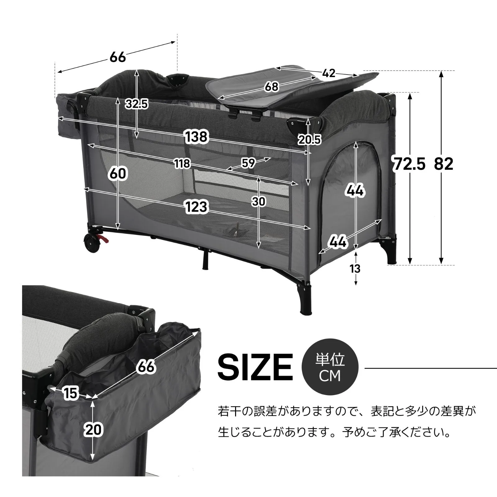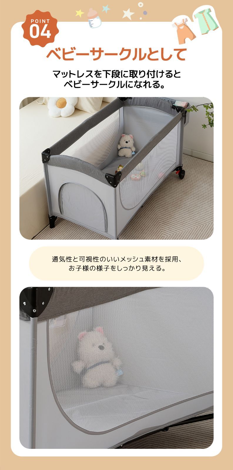 プレイヤード 折りたたみ ベビーサークル 添い寝ベッド おむつ替えテーブル付 収納付き マット付き お昼寝ベッド 組立簡単 新生児 キャリーバッグ付