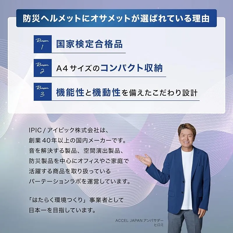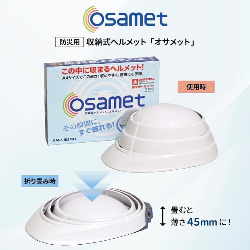 IPIC/アイピックが推奨する防災アイテム 収縮式ヘルメット オサメット OSAMET 国家検定合格品