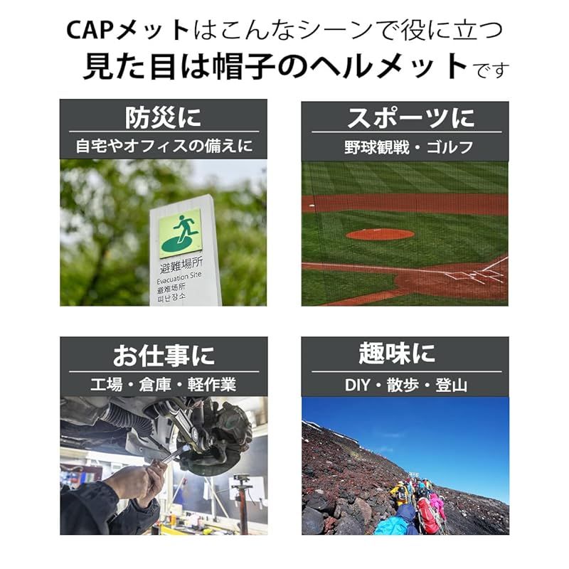 【福島県企業が開発】ボウメット コットン 帽子型簡易ヘルメット 防災用 CAPメット キャップメット 安全帽 (ブラック) 製造元:HIH 商品番号:CM 色:ブラック 商品タイプ:インダストリアル