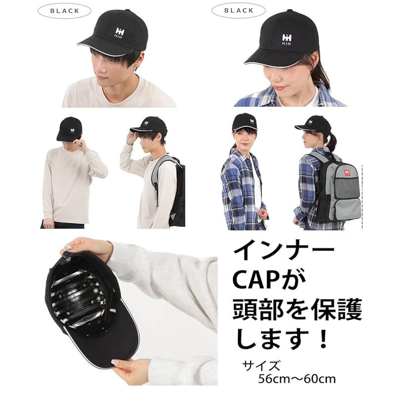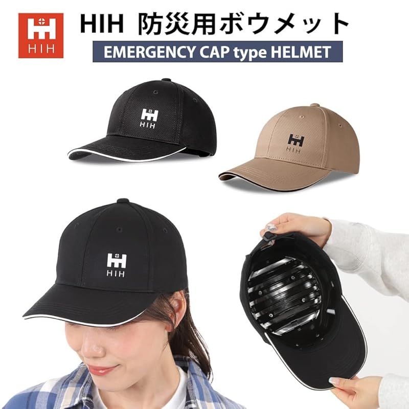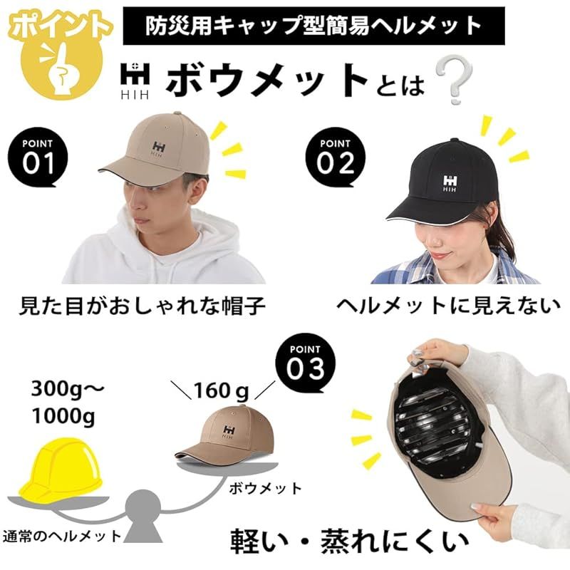 【新品】 HIH デザイナーズヘルメット 防災グッズ 【福島県企業が開発】ボウメット コットン 帽子型簡易ヘルメット 防災用 CAPメット キャップメット 安全帽 (ブラック)