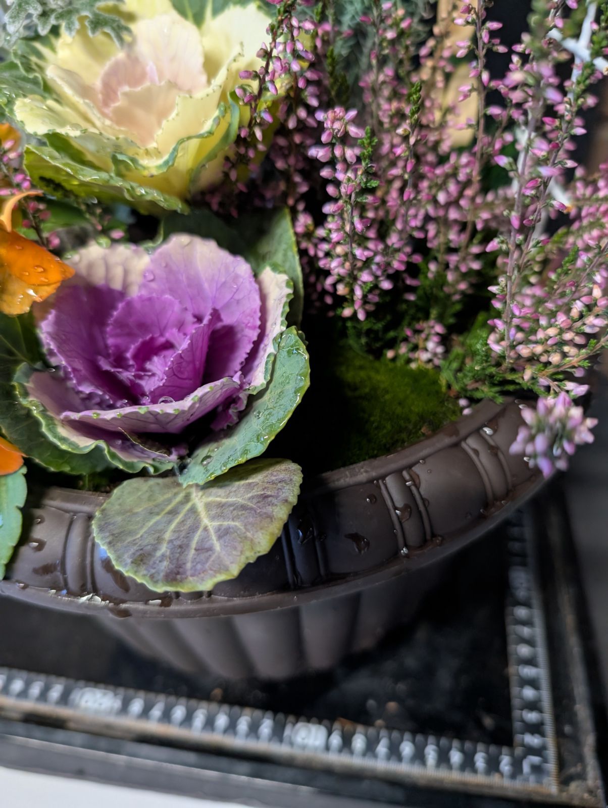 お正月作品にふさわしいように苔を敷き詰めてあります。