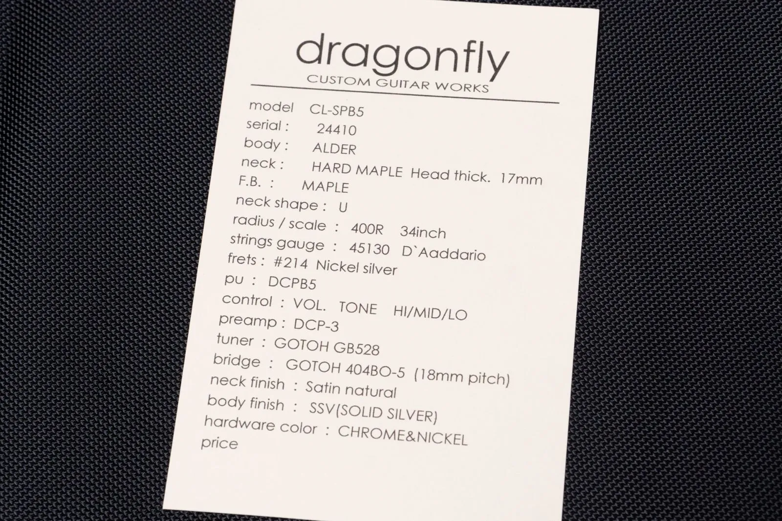 dragonflyにはいくつかのモデルがありますが、本モデルは新しく始まったクラシックなPBスタイルのCL-SPB5です。