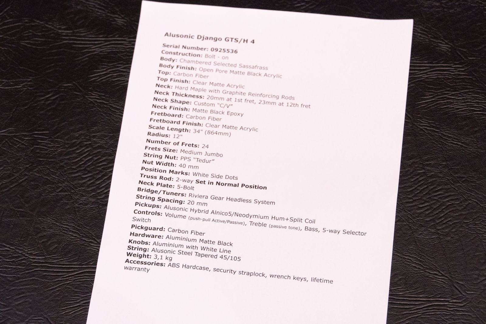 Neck Finish : Matte Black Epoxy