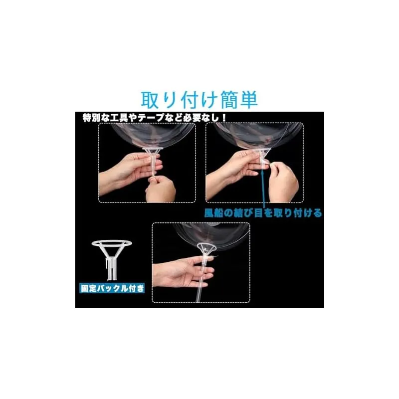 【透明なスティック】本製品はスティク部分も固定スタンド部分も透明で作っているため、風船の色味を邪魔しないデザインになっています。風船の色味やデザインに注目してほしい時におすすめです。