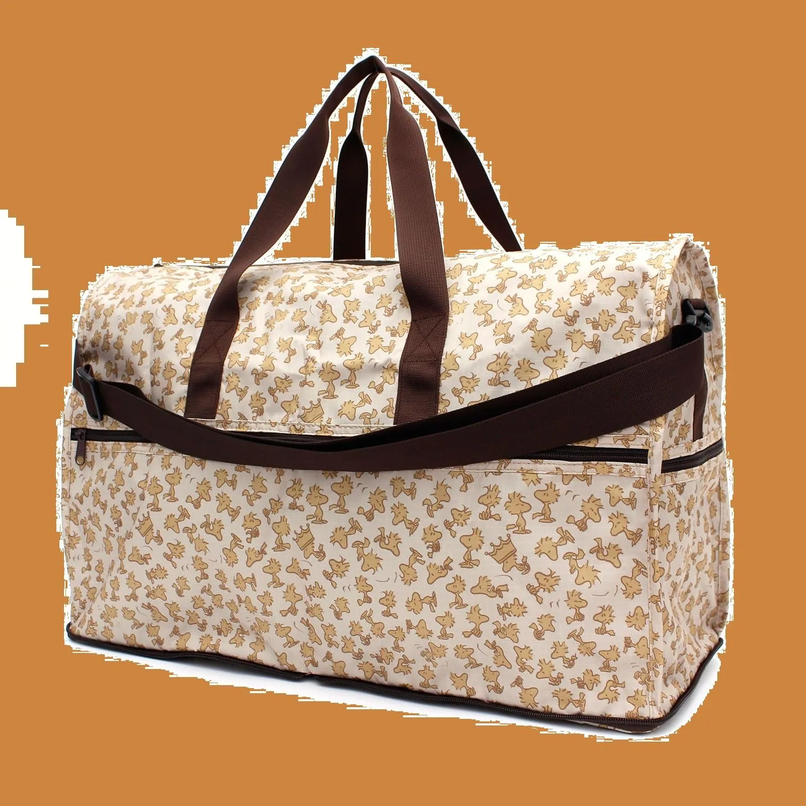 遊び心のあるプリント生地を使用した2WAYボストンバッグです。 コンパクトに折りたたむことができるから持ち運びしやすく、サブバッグにもぴったり。 付属のストラップを装着すればショルダーにアレンジできるので、長時間の移動や両手をあけたい時にもおすすめ。 背面にはキャリーバー通しがあるので、カートの上に取り付けることができます。 1泊程度の旅行はもちろん、ジムなどさまざまなシーンで活躍してくれそう。