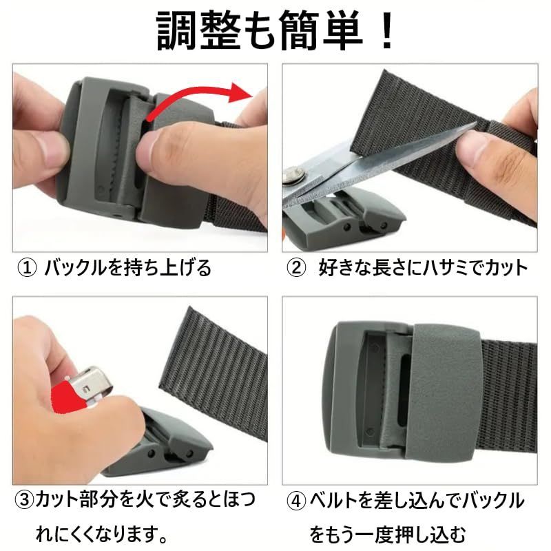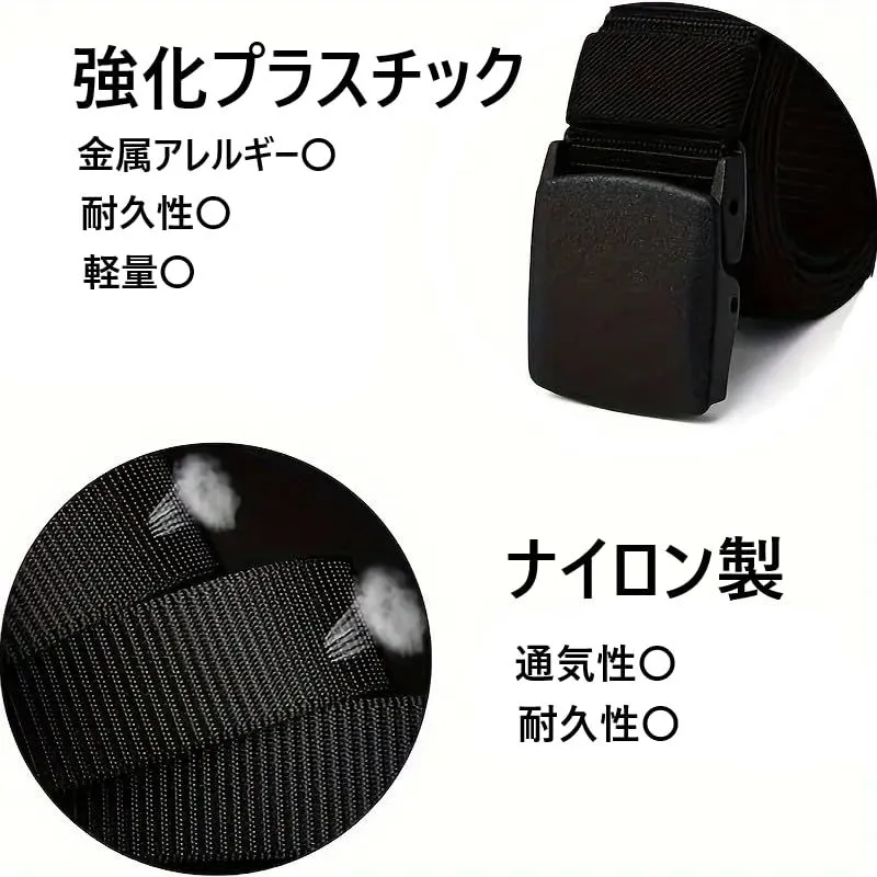 ベルト メンズベルト ナイロンベルト 金属フリー 自衛隊 フリーサイズ ミリタリー ウエスト スポーツ バックル 軽量 メンズ ベルト