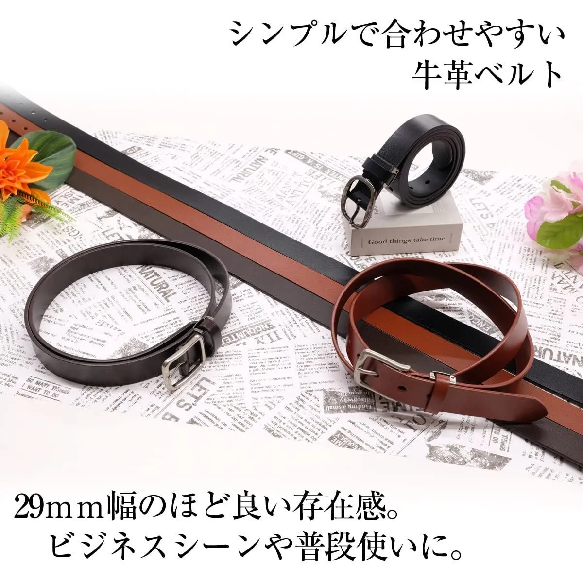 【使いやすい帯幅】丁度いい2.9mmのベルト幅。スーツ やフォーマルだけでなく、カジュアルにも。パンツを選ばずに使えるので重宝できます。