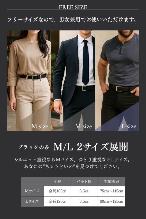 【男女問わず様々な体型にフィット】 伸縮性のある素材と編み込み方法により、ベルトの本体が伸び縮みすることで、胴回りが小さい女性にも、メンズ・レディース関係なく、ユニセックス フリーサイズで使用頂けます