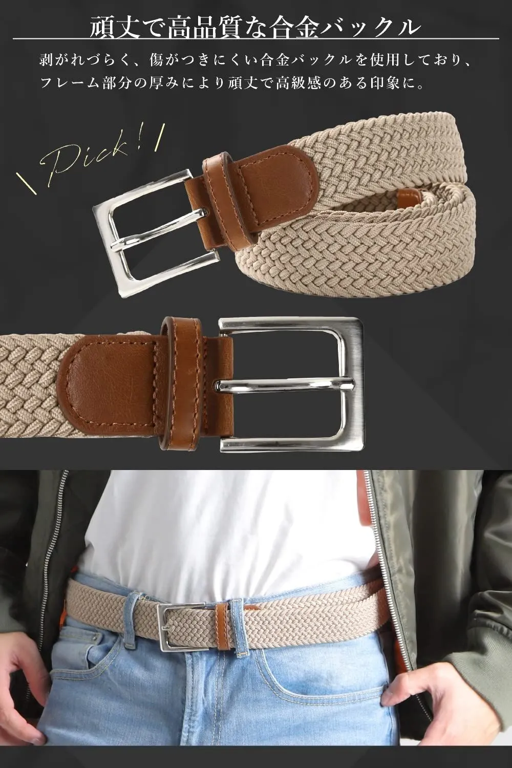 ?高品質 メンズ 編み込み 伸縮 カジュアル ゴム ストレッチ メッシュベルト です ゴルフ用品 ゴルフ の ポロシャツ チノパンにも相性抜群