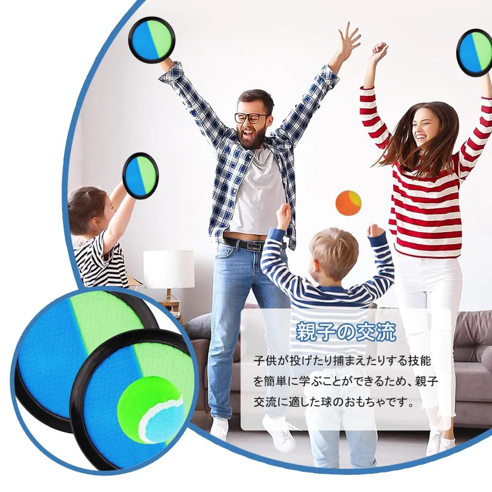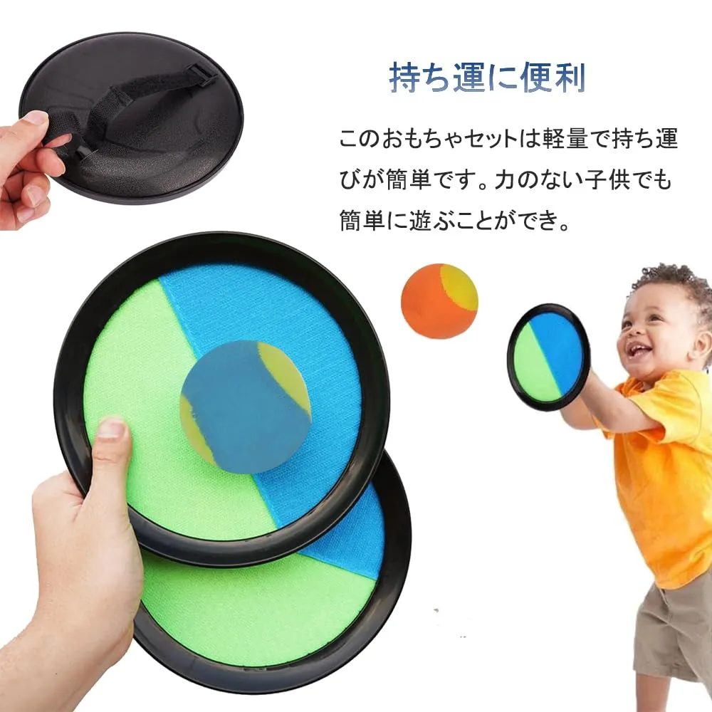 キャッチボール フライングボール 5個セット マジックボール ディスク ボール 親子 粘着式 マジックテープ フライングキャッチボール 人気 アウトドア (クディスク*2+ボール*3)