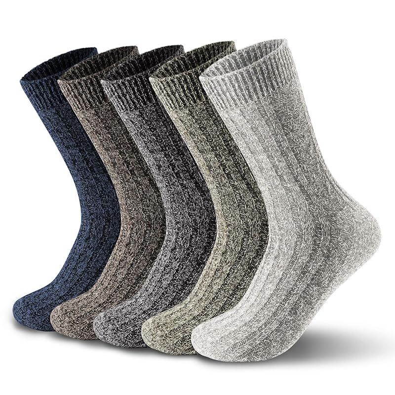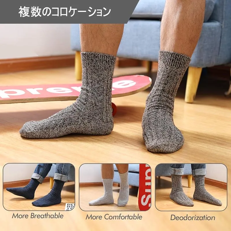 こられの暖かいメンズ保温靴下はウール、ポリエステル、スパンデックスの混紡素材により、足への熱量をロックし、足を暖かくてドライで快適に保ちます。熱い日には、弊店のメンズ作業員靴下は水分や汗を排出して快適で乾燥したままにキープします