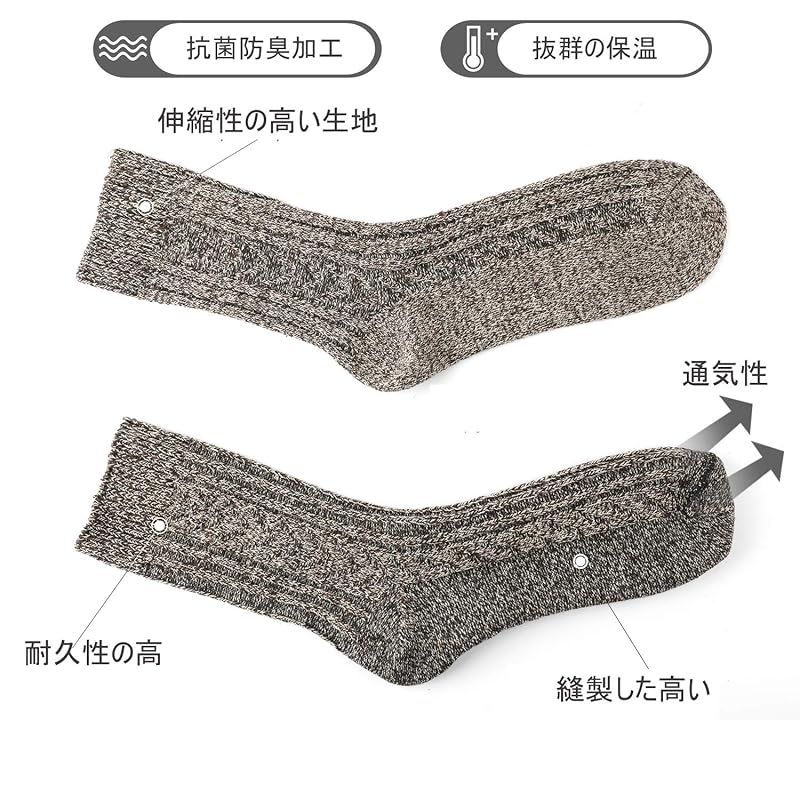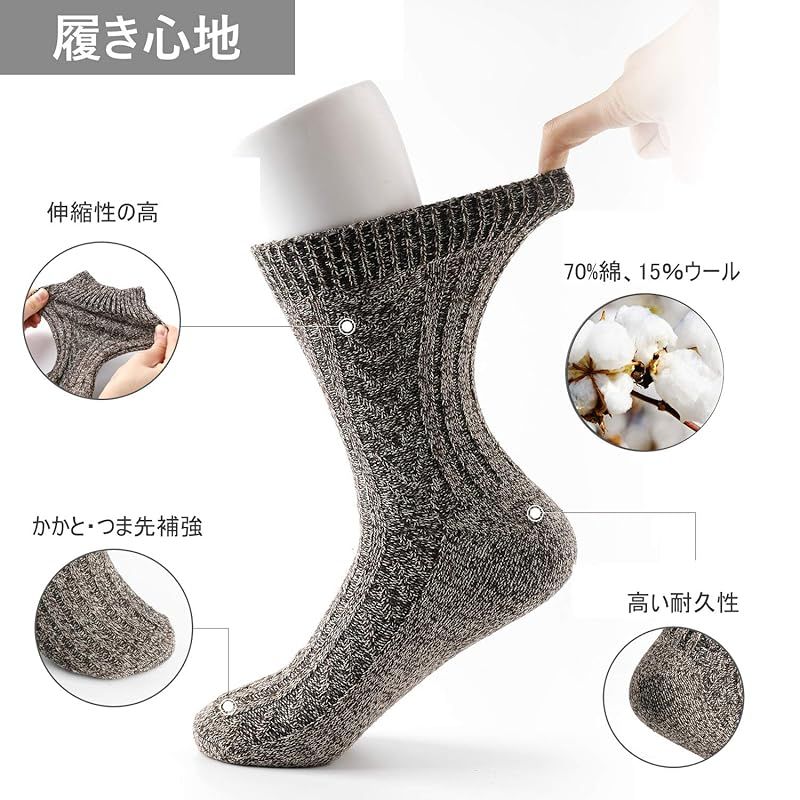 【新品】 [konciwa] 靴下 メンズ 秋冬 中厚手 防寒 あったか温暖力 スキー ヒートテック 足底クッション編み くつした 綿 吸汗 防臭 抗菌 靴下 アウトドア 5足セット24-28cm (靴の下2)