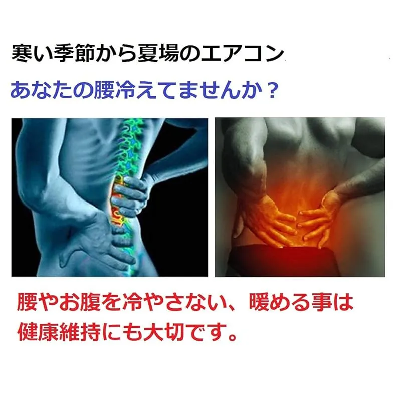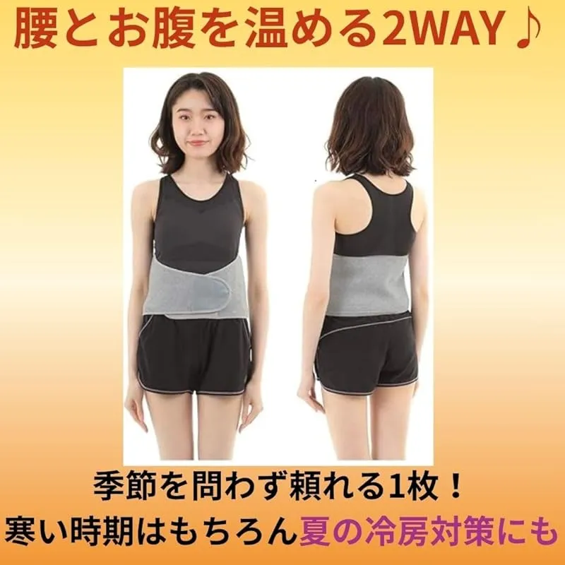 腰部を暖めることで、冷えから守ります。着用後後ろに回せばお腹を温められる腹巻仕様の2WAY!トルマリンや電気と違い体温で暖めるから熱すぎず就寝時にも安心。