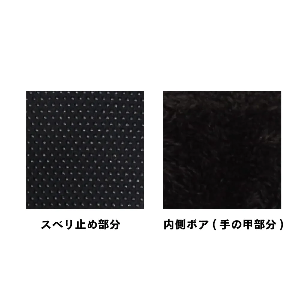 材質:掌部 ポリエステル、ポリウレタン/甲部 ポリエステル/ジャージ部 ポリエステル、ポリウレタン/ボア ポリエステル/スベリ止め部 ポリ塩化ビニル/防風フイルム ポリエチレン