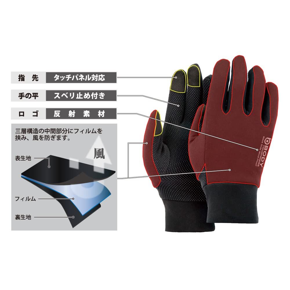 ●手の甲側に防風フィルムを使用し、フィット感と保温性を両立。