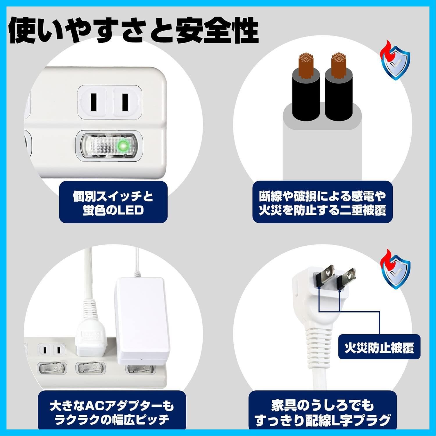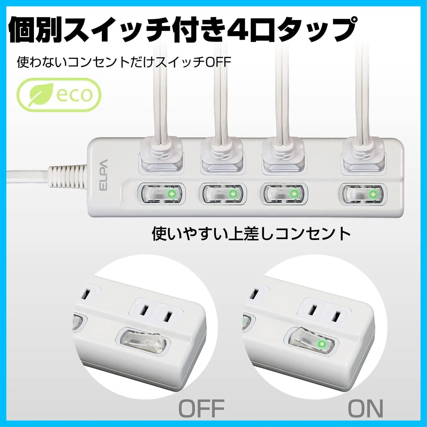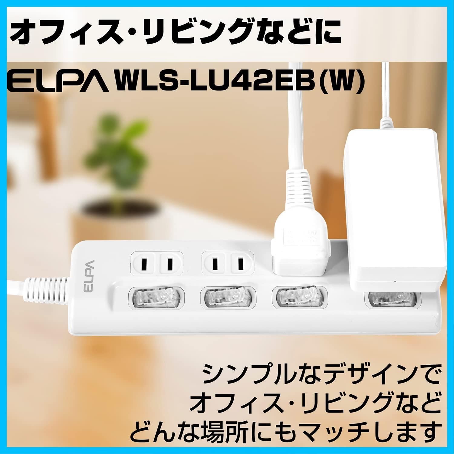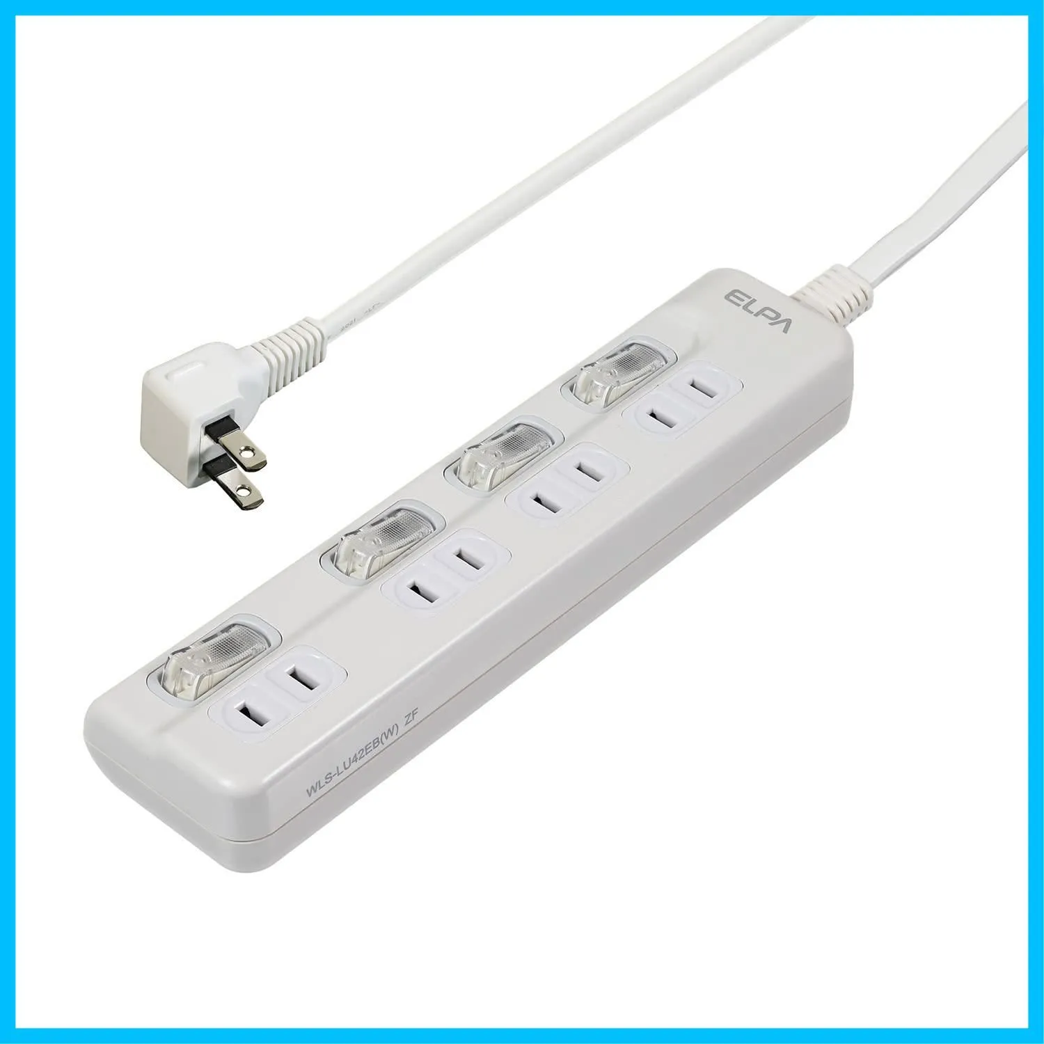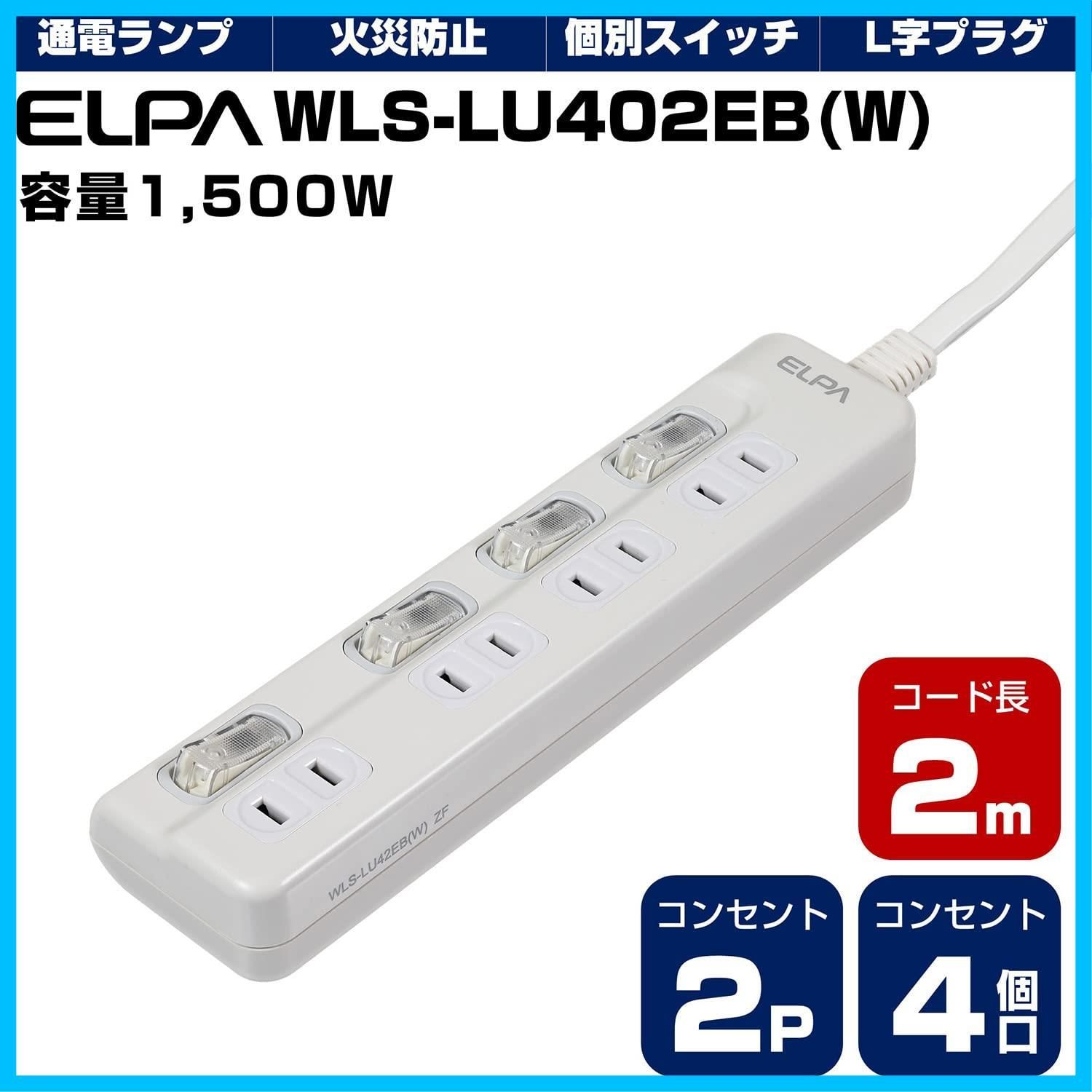 エルパELPA) LEDランプスイッチ付タップ 電源タップ 延長コード 125V 2m 4個口 WLS-LU42EBW)