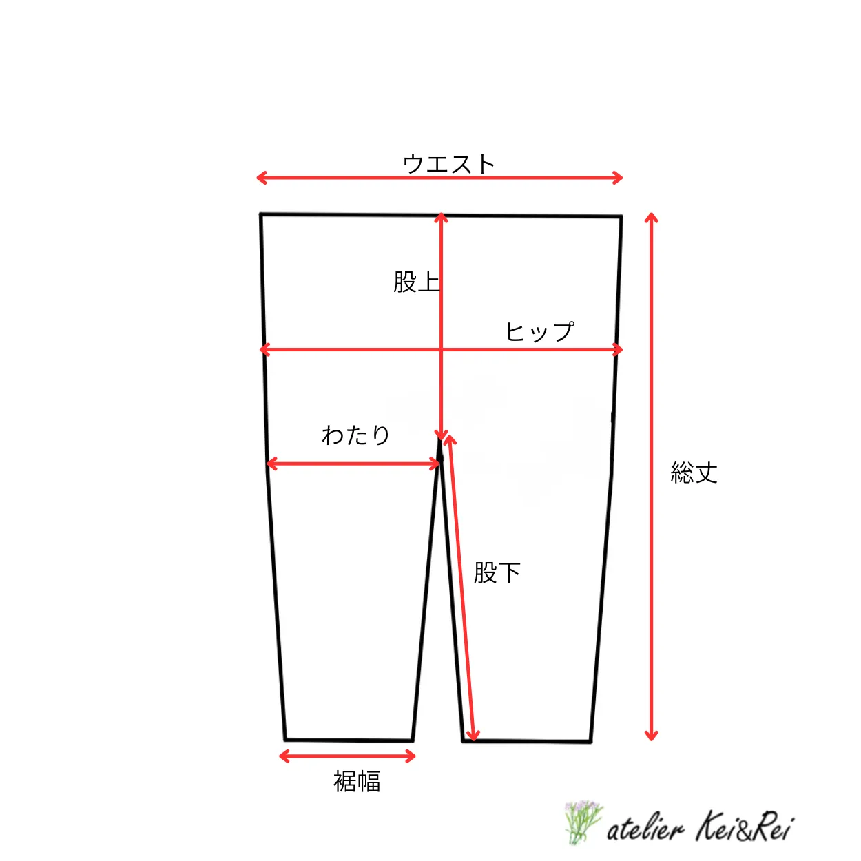 ウエストは総ゴム仕様で、お好みに応じて調整可能です。
