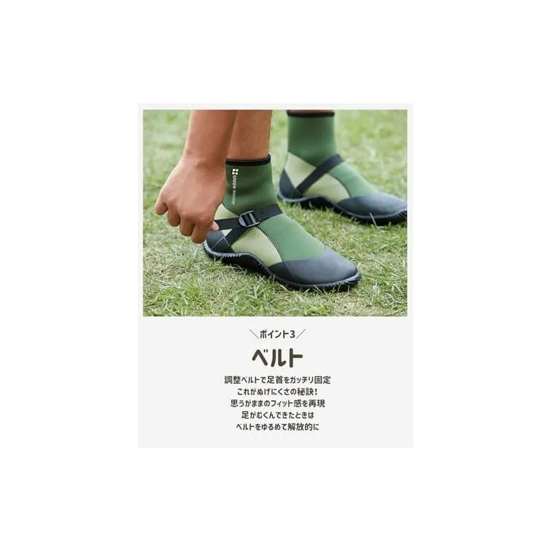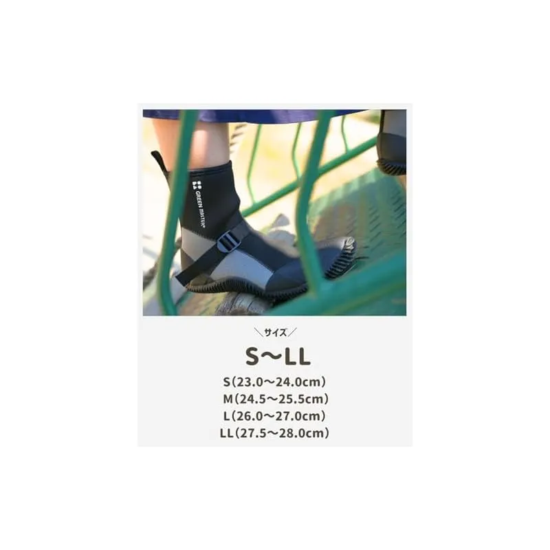 材質:本体/合成ゴム・ナイロン・ポリエステル・ポリウレタン、靴底・補強/天然ゴム、バンド/面ファスナー(ナイロン)・プラスチック