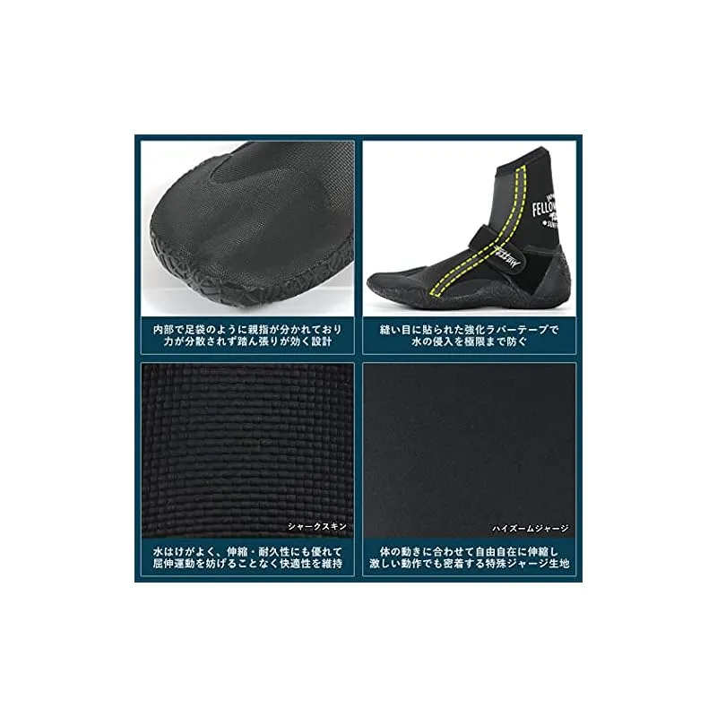 【新品】 FELLOW サーフブーツ 3.5mm 保温 裏起毛 メンズ レディース ジュニア 日本規格 冬用 サーフィン ウェット ブーツ ブラック 26cm
