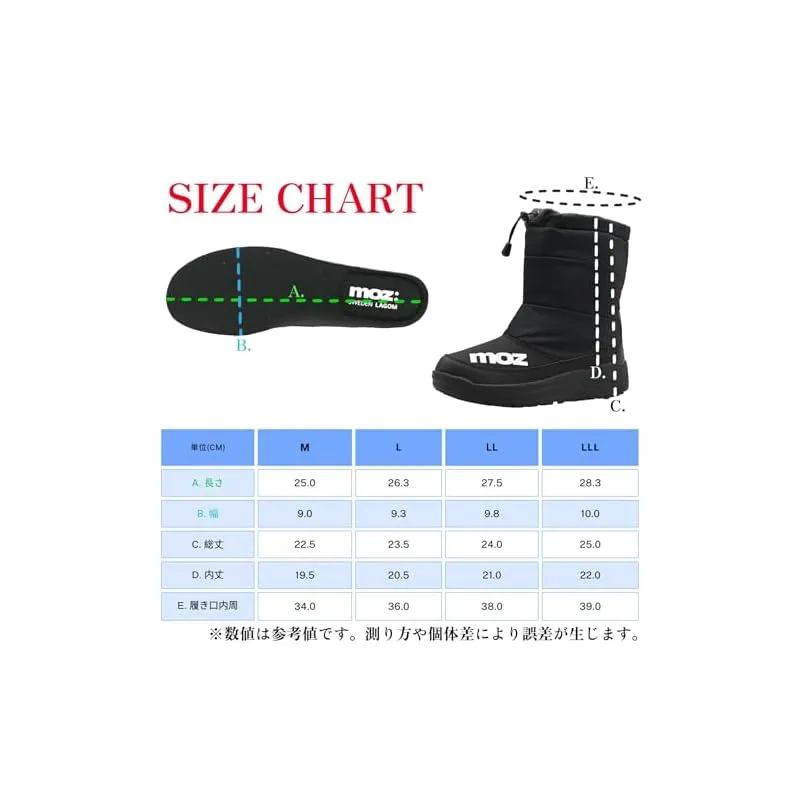 サイズレンジ(中敷き計測参考値):M(約25.0cm) L(約26.3cm) LL(約27.5cm) XXL(LLL)(約28.3cm)
