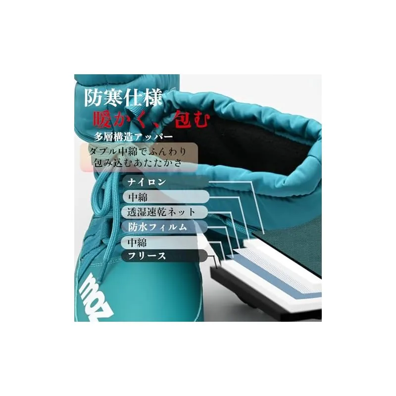 本体撥水加工&接地面より46時間防水搭載。雪だけでなく、冬の冷たい雨の中でも足を暖かく保つ