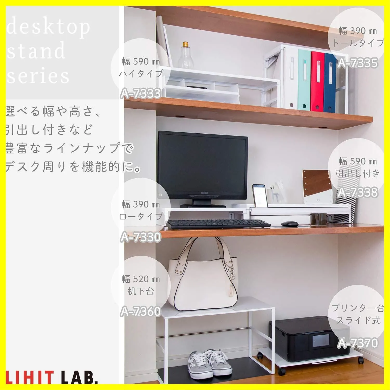 ノートPCやデスク小物の整理に活用しよう。