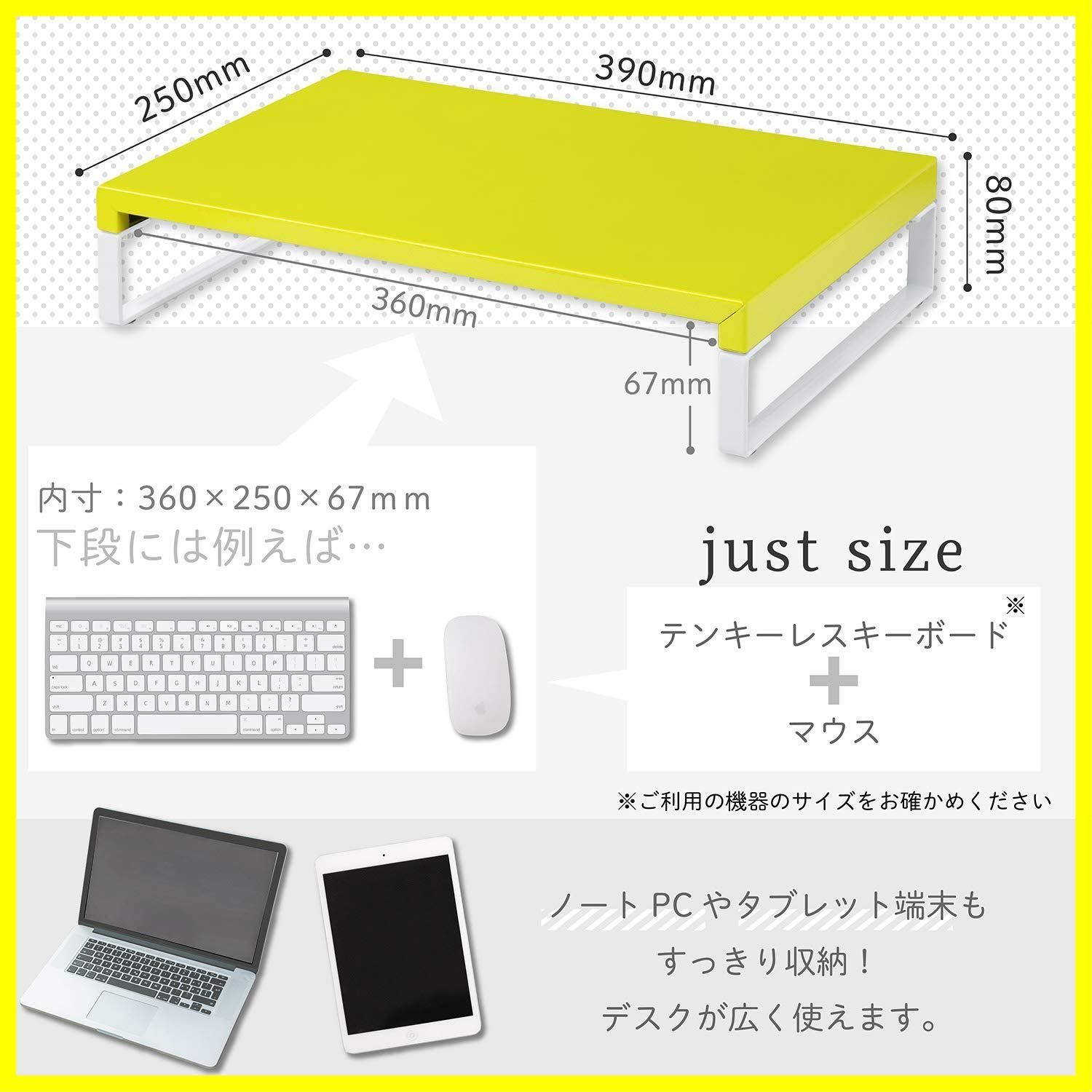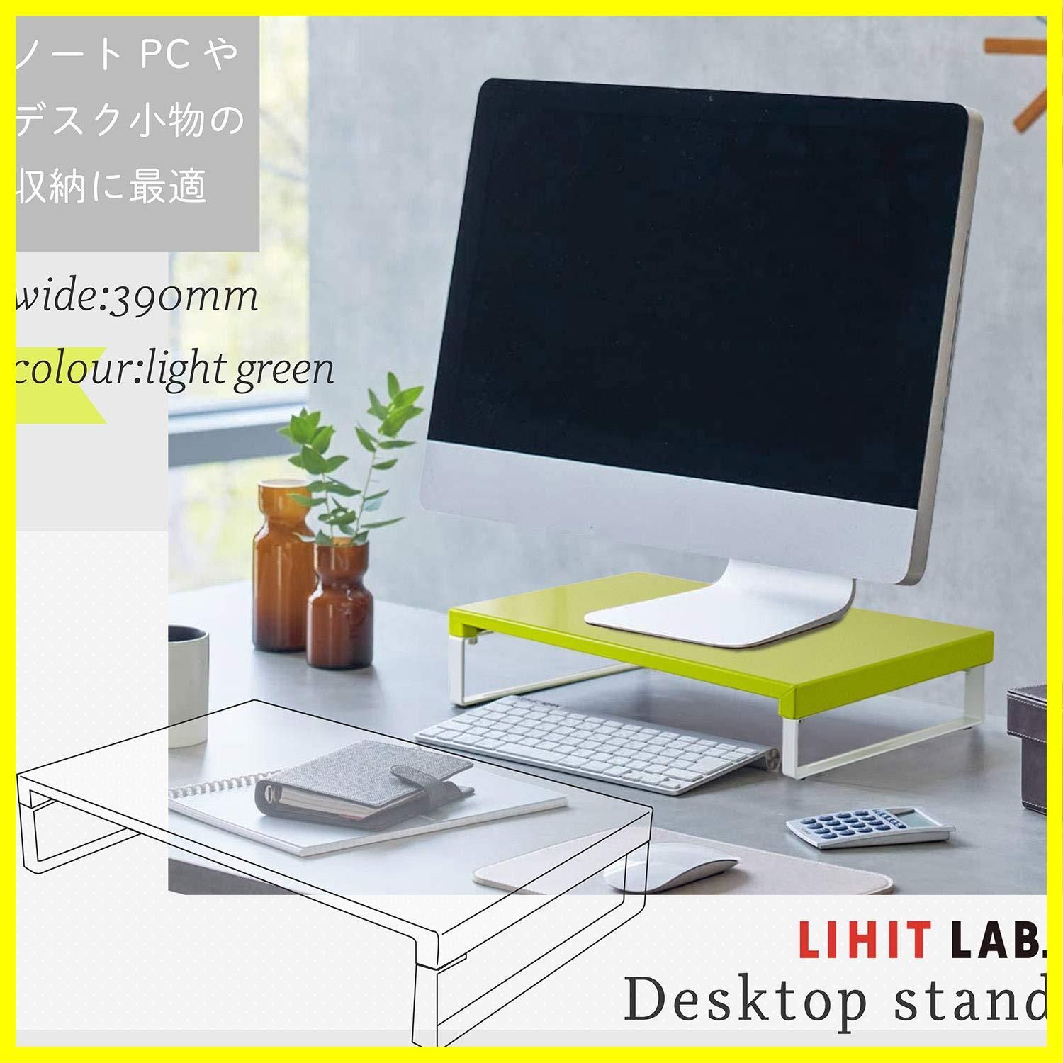 リヒトラブ パソコン台 モニター台 机上台 黄緑 幅39×奥行25×高さ8cm ロー 耐荷重15kg A7330-6
