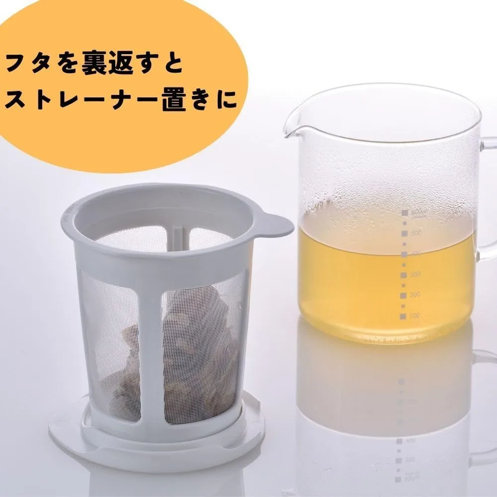 【使いやすい工夫】 ストレーナーのへこみ部をポットの縁に引っかけて、最後の1滴まで抽出できます。フタを裏返すとストレーナー置きにも。