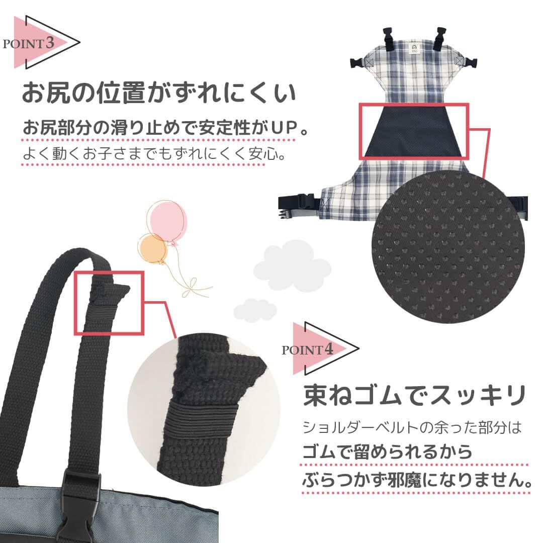 お尻部分に滑り止めが付いているから、お尻がずれにくく安定性UP