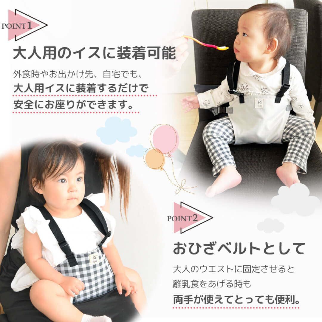 ●当製品はひとりでお座りができるお子様用の簡易補助具です。ひとりでお座りができないお子様には使用しないでください。