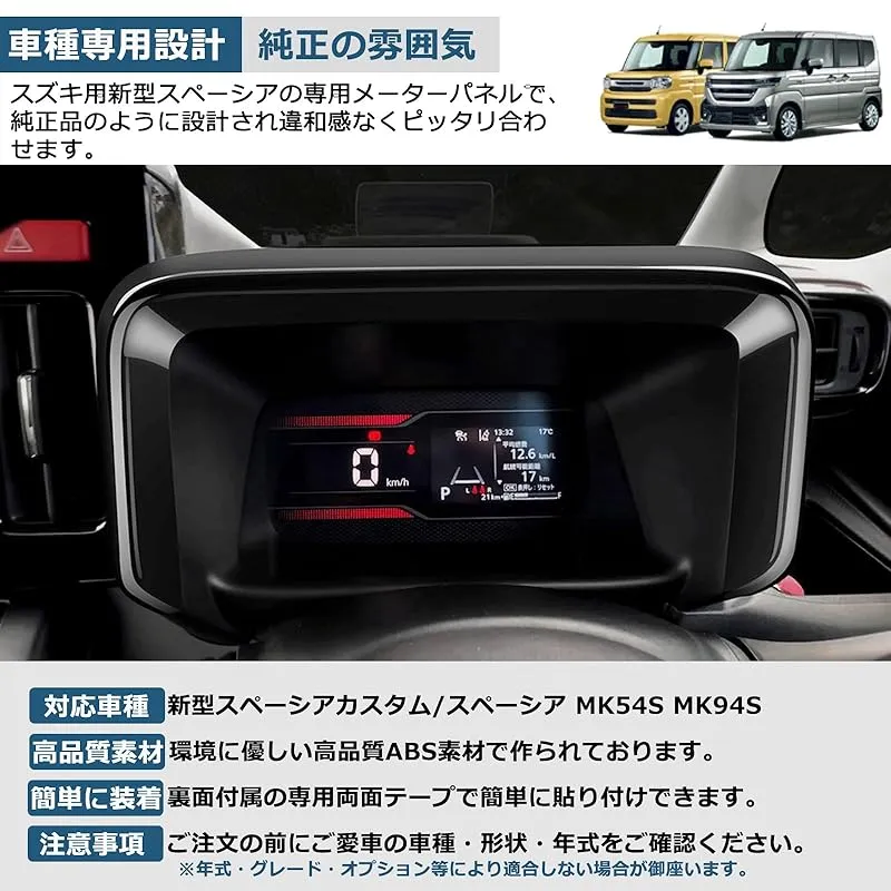 【対応車種】:新型スペーシアカスタム/スペーシア MK54S MK94S Spacia/Spacia Custom MK54S MK94S(2023年11月~現行)への専用メーターインナーフードで、おしゃれな色調で上質感がグットアップします。※年式・グレード・オプション等により適合しない場合が御座います。ご注文の前にご愛車の車種・形状・年式をご確認ください。