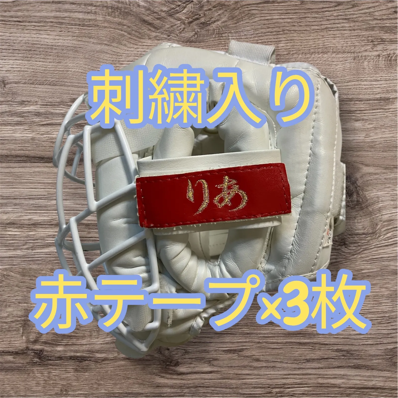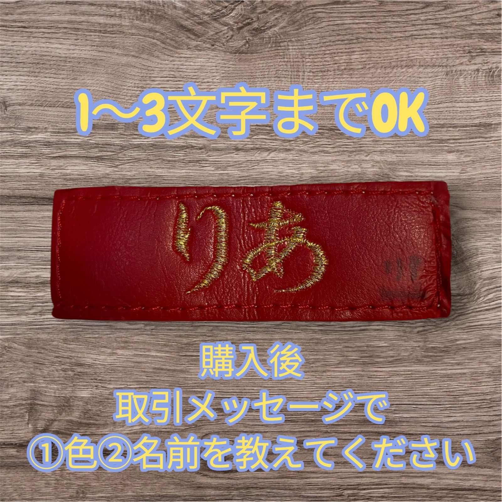 即発送可能! 空手ヘッドガードの赤テープに個人名などを3文字まで刺繍します。 赤テープはマーシャルワールド 製です。 *ヘッドガード本体は付属していません。 メッセージで ①糸の色 ②刺繍文字(3文字まで) をご指定下さい。 糸色は ①金(写真) ②黒 ③銀 ④紫 ⑤薄赤紫 ⑥群青色 の6色から選んでください。 例:①涼華 ②金 この商品は刺繍込みで、3枚2500円です。 1-2日以内に発送します。 #空手 #赤テープ #刺繍 #オーダーメイド #ヘッドガード