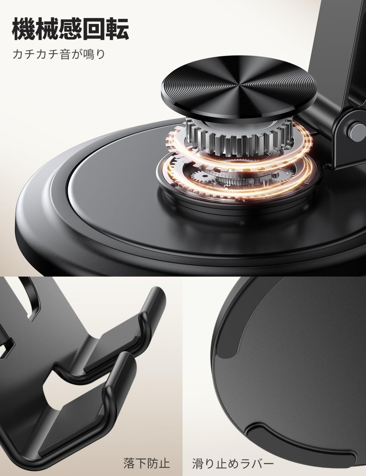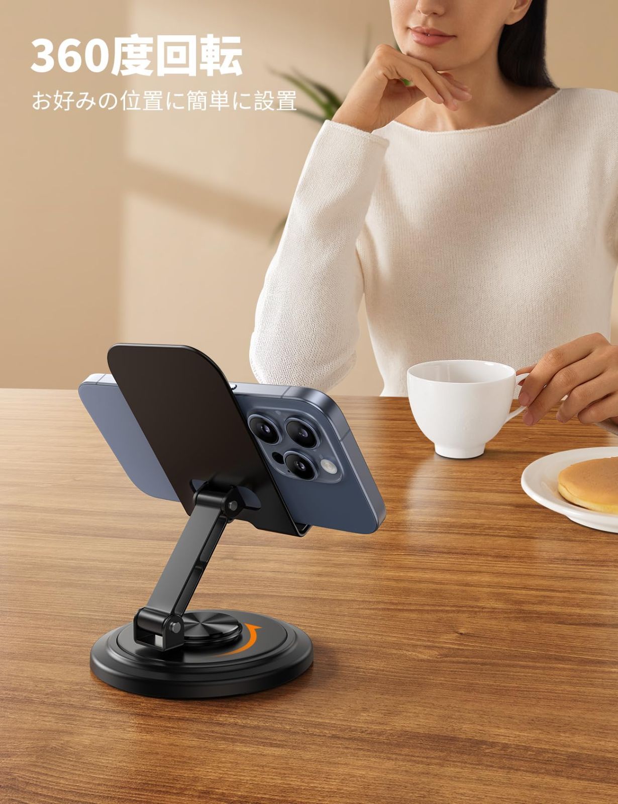 【360度回転・カチカチ音】 軽量 折り畳み スマホスタンド Lamicall : ABS アルミ 卓上 コンパクト 角度 回転 携帯 置き アイホン 立て 縦 横 すまほ 台 折りたたみ スマホ 机 デスク 滑り止め スマフォ iPhone 17 Air 16e 16 15 14 plus pro promax 13 mini 12 se Huawei Xperia android に対応 黒