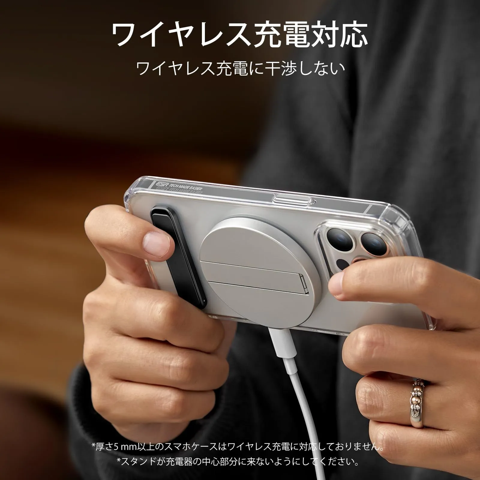 ESR スマホ キックスタンド メタル 縦置き 横置き対応 角度調節可能 iPhone Air 17 16e 16 15 14 13 12、Google Pixel 10、Samsung、Android対応 - ブラック